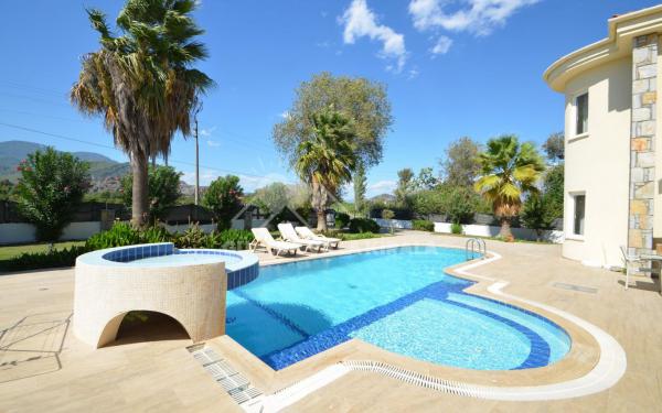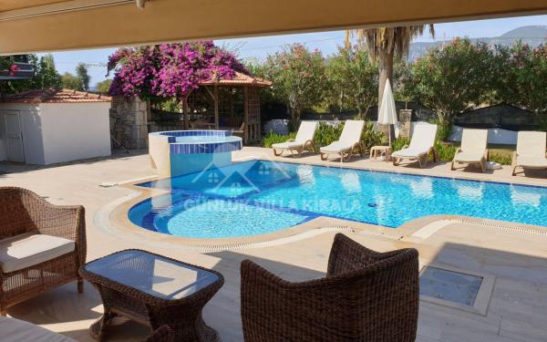 Büyük özel havuz, su altı yapıya sahiptir.Ayrıca, bahçeler ve geniş balkonlar ile birlikte salonlarla döşenmiş çeşitli güneşlenme alanları sunan geniş bir veranda alanı bulunmaktadır. Güneş batarken ışıklar, dağların arka damlasına karşı arazinin etrafını aydınlatarak sakin ve dinlendirici bir akşam için güzel bir ortam yaratır. Özel taştan yapılmış bir alıcı ve havuz yatağı duş mevcuttur. Masa ve sandalyelerle tamamlanan geniş gölgeli veranda, açık havada yemek yemek için sıra dışı, ayrıca yazlık gölgelenmek için çekici bir kapalı Türk oturma alanı vardır.
