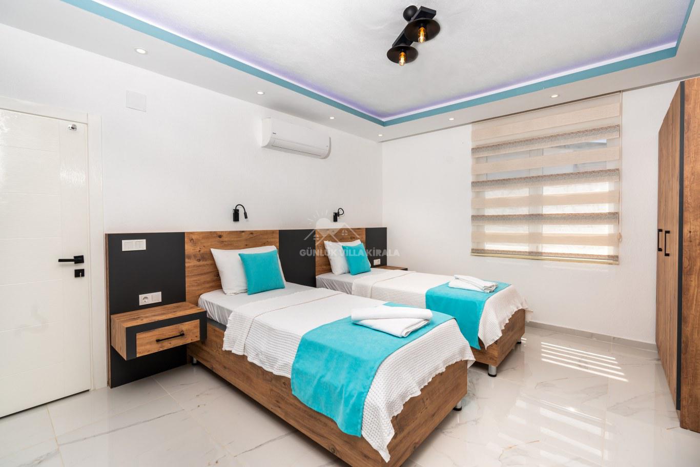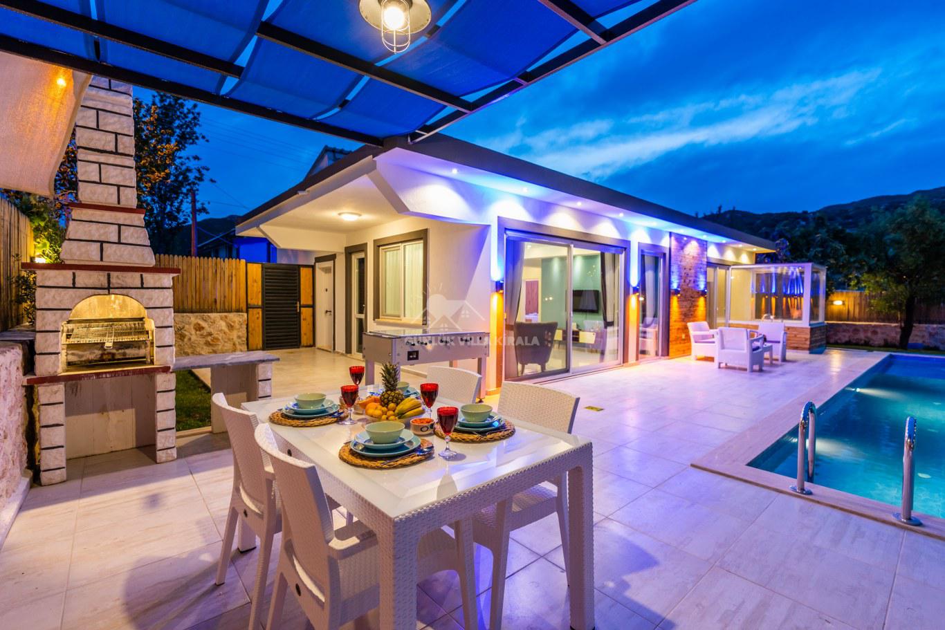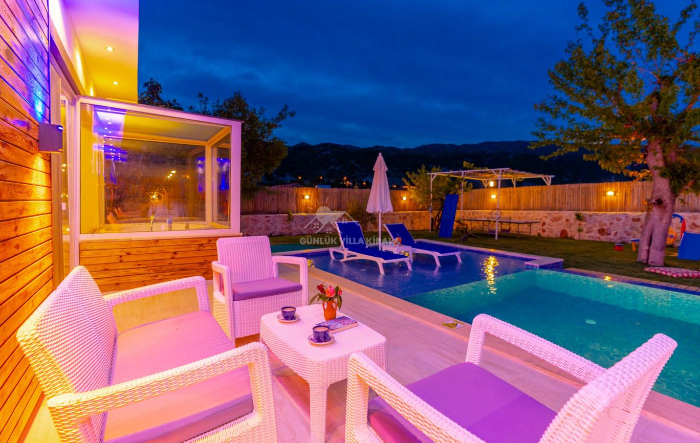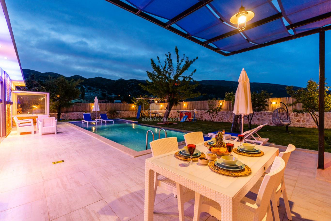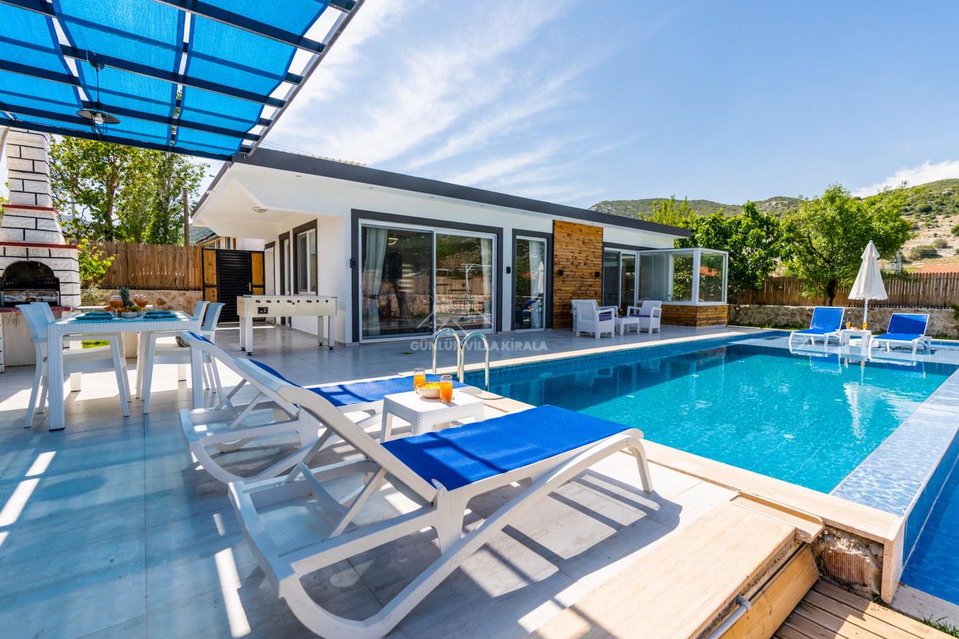 Villa Aylin, 4 kişilik konaklama kapasitesine sahiptir ve geniş yaşam alanlarıyla misafirlerine ferah bir ortam sunar. 2 yatak odası, 3yatak ve 2 banyosuyla, her bir misafirin ihtiyaçlarını karşılayacak şekilde düşünülmüştür. İç mekanlar modern bir tarzda dekore edilmiş olup, rahatlatıcı renk paleti ve şık mobilyalarla donatılmıştır. Villa Aylin, kendinizi huzurlu bir cennette hissetmenizi sağlayan geniş bir bahçeye sahiptir. Sevdiklerinizle beraber açık havada keyifli vakit geçirebilir, güneşin tadını çıkarabilir veya serin havuzda serinleyebilirsiniz. Villanın terası, muhteşem bir manzaraya sahiptir ve gün batımında romantik anların yaşanabileceği bir mekandır. Villa Bella, tatiliniz boyunca ihtiyacınız olabilecek tüm olanakları sunar. Tam donanımlı bir mutfak, modern elektronik eşyalar, temiz havlu ve çarşaflar gibi konforunuz için gerekli olan her şey bulunmaktadır. Ayrıca, ihtiyaçlarınız doğrultusunda ek hizmetler sağlayabilen deneyimli bir ekibe de sahiptir. Eğer isterseniz, araba kiralama, özel şef hizmeti veya tur düzenleme gibi taleplerinizi karşılamak için yardımcı olabilirler. Villa Aylin, rüya gibi bir tatilin kapılarını aralayan özel bir seçenektir. Doğanın kalbinde konumlanmış olması, size huzur dolu bir kaçış sunarken aynı zamanda çevredeki doğal güzellikleri keşfetme fırsatı da verir. Bu villa, size ve sevdiklerinize unutulmaz anılarla dolu bir tatil yaşatmayı hedefler.