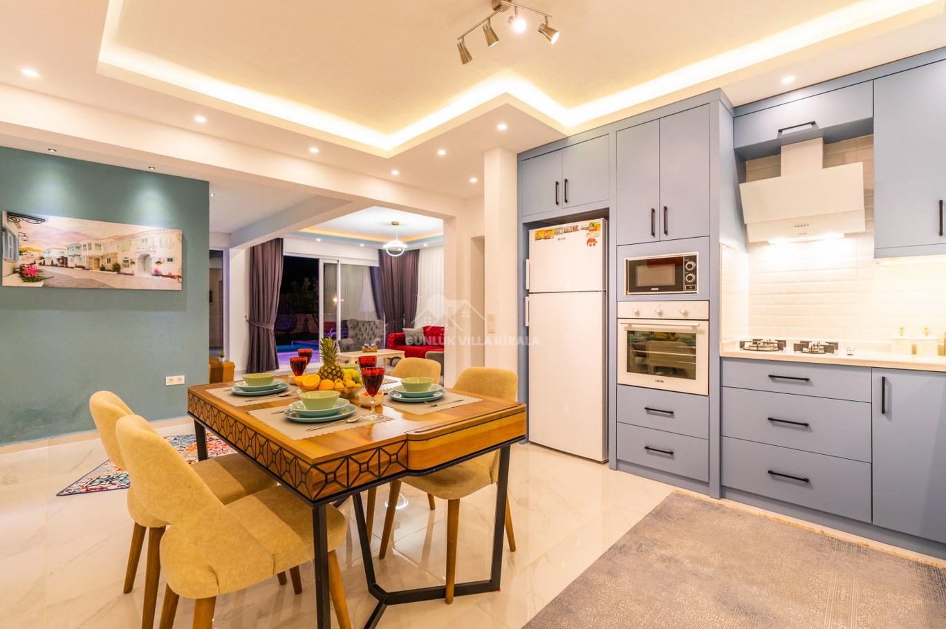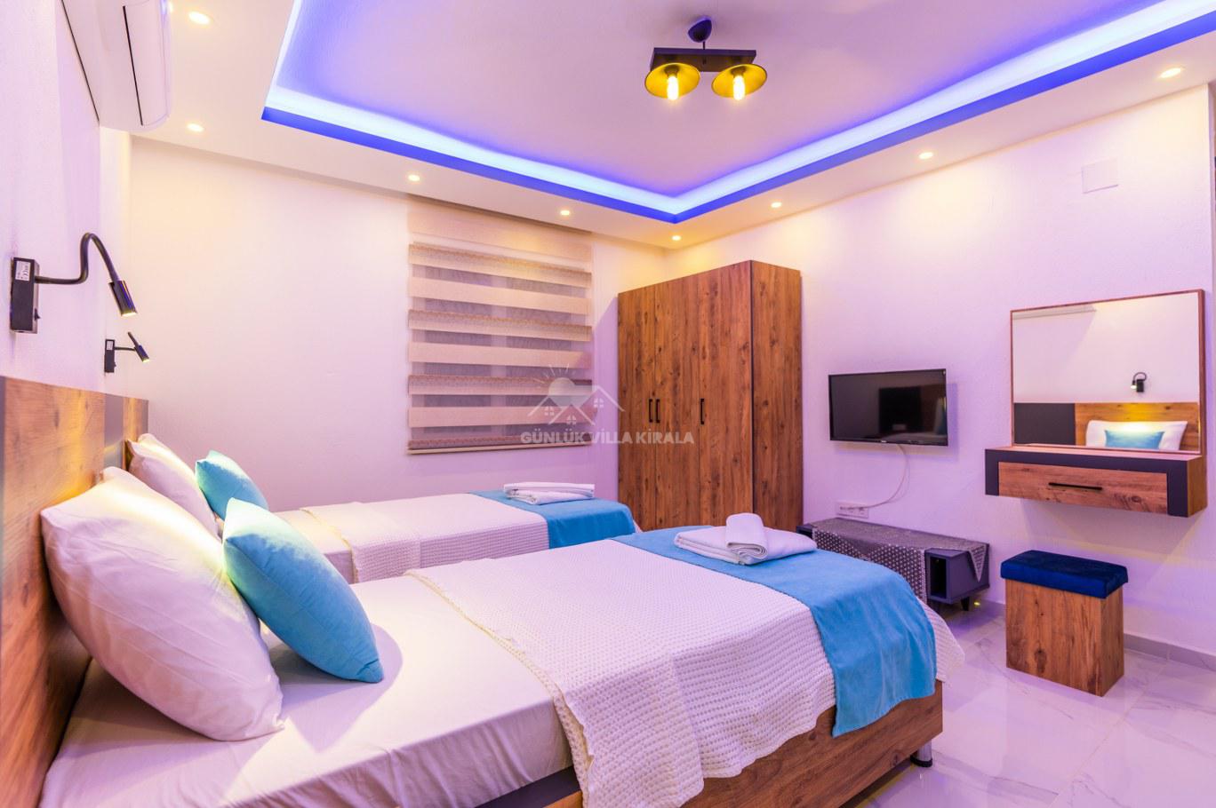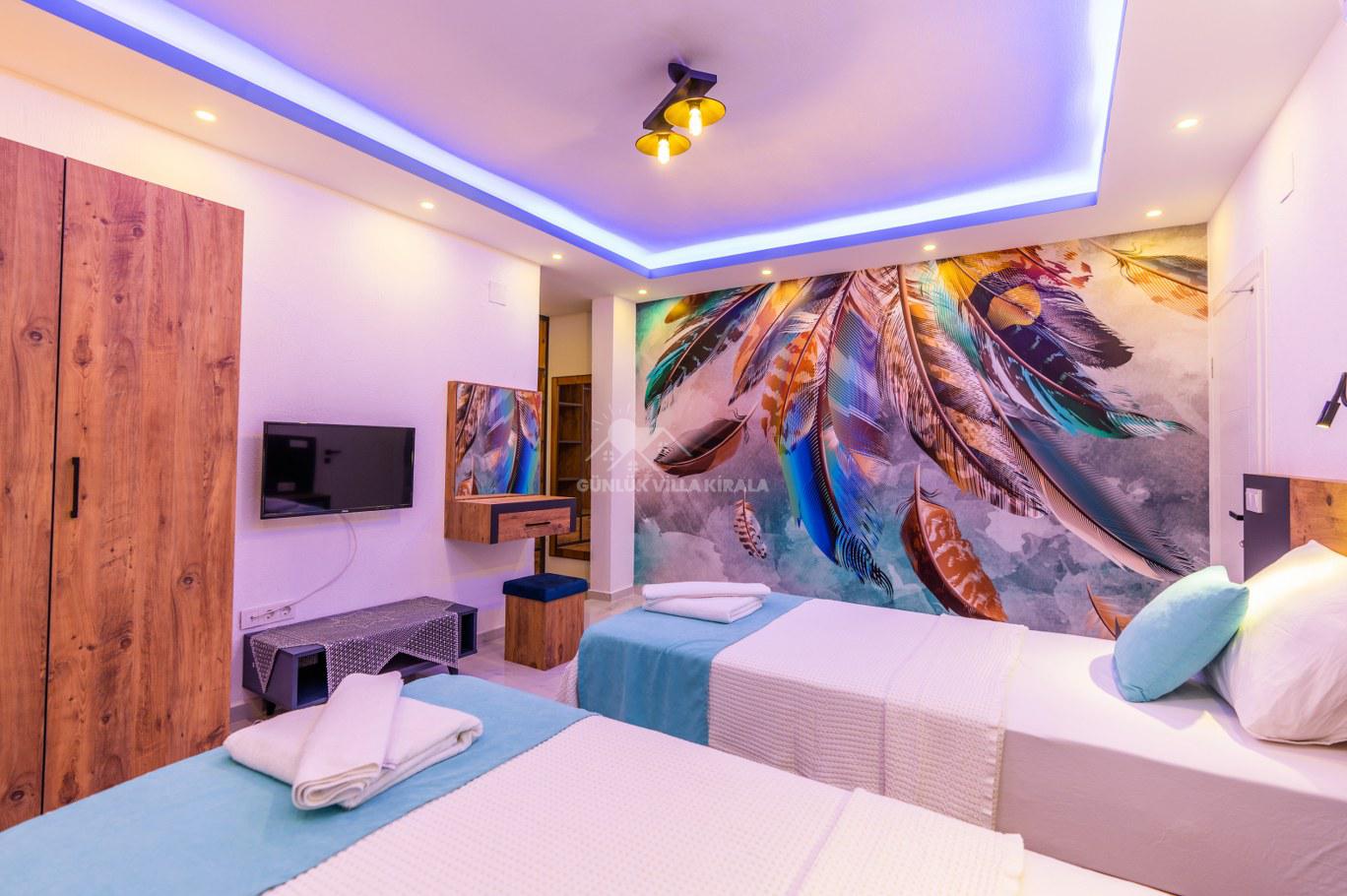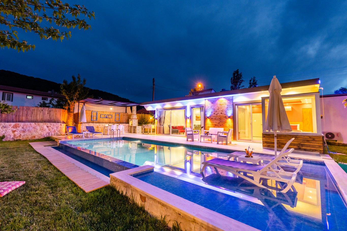 Villa Aylin, 4 kişilik konaklama kapasitesine sahiptir ve geniş yaşam alanlarıyla misafirlerine ferah bir ortam sunar. 2 yatak odası, 3yatak ve 2 banyosuyla, her bir misafirin ihtiyaçlarını karşılayacak şekilde düşünülmüştür. İç mekanlar modern bir tarzda dekore edilmiş olup, rahatlatıcı renk paleti ve şık mobilyalarla donatılmıştır. Villa Aylin, kendinizi huzurlu bir cennette hissetmenizi sağlayan geniş bir bahçeye sahiptir. Sevdiklerinizle beraber açık havada keyifli vakit geçirebilir, güneşin tadını çıkarabilir veya serin havuzda serinleyebilirsiniz. Villanın terası, muhteşem bir manzaraya sahiptir ve gün batımında romantik anların yaşanabileceği bir mekandır. Villa Bella, tatiliniz boyunca ihtiyacınız olabilecek tüm olanakları sunar. Tam donanımlı bir mutfak, modern elektronik eşyalar, temiz havlu ve çarşaflar gibi konforunuz için gerekli olan her şey bulunmaktadır. Ayrıca, ihtiyaçlarınız doğrultusunda ek hizmetler sağlayabilen deneyimli bir ekibe de sahiptir. Eğer isterseniz, araba kiralama, özel şef hizmeti veya tur düzenleme gibi taleplerinizi karşılamak için yardımcı olabilirler. Villa Aylin, rüya gibi bir tatilin kapılarını aralayan özel bir seçenektir. Doğanın kalbinde konumlanmış olması, size huzur dolu bir kaçış sunarken aynı zamanda çevredeki doğal güzellikleri keşfetme fırsatı da verir. Bu villa, size ve sevdiklerinize unutulmaz anılarla dolu bir tatil yaşatmayı hedefler.