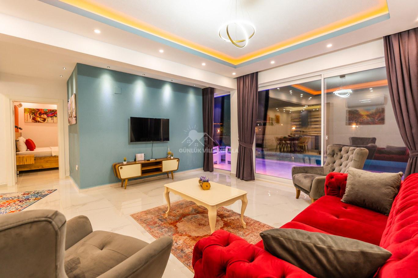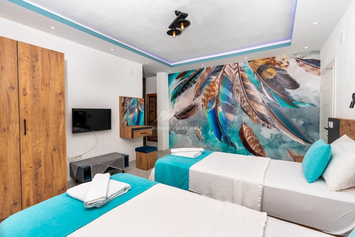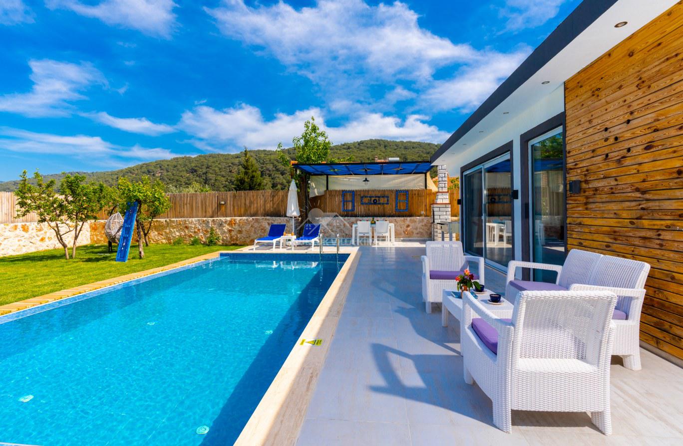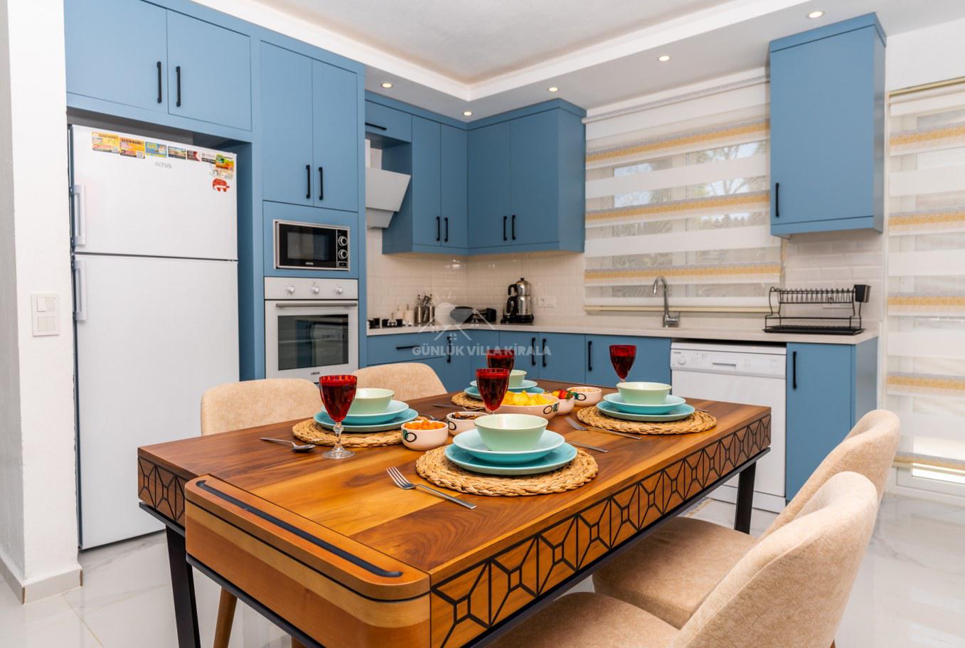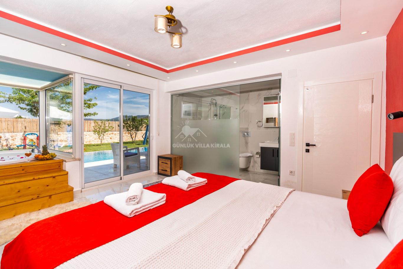 Villa Aylin, 4 kişilik konaklama kapasitesine sahiptir ve geniş yaşam alanlarıyla misafirlerine ferah bir ortam sunar. 2 yatak odası, 3yatak ve 2 banyosuyla, her bir misafirin ihtiyaçlarını karşılayacak şekilde düşünülmüştür. İç mekanlar modern bir tarzda dekore edilmiş olup, rahatlatıcı renk paleti ve şık mobilyalarla donatılmıştır. Villa Aylin, kendinizi huzurlu bir cennette hissetmenizi sağlayan geniş bir bahçeye sahiptir. Sevdiklerinizle beraber açık havada keyifli vakit geçirebilir, güneşin tadını çıkarabilir veya serin havuzda serinleyebilirsiniz. Villanın terası, muhteşem bir manzaraya sahiptir ve gün batımında romantik anların yaşanabileceği bir mekandır. Villa Bella, tatiliniz boyunca ihtiyacınız olabilecek tüm olanakları sunar. Tam donanımlı bir mutfak, modern elektronik eşyalar, temiz havlu ve çarşaflar gibi konforunuz için gerekli olan her şey bulunmaktadır. Ayrıca, ihtiyaçlarınız doğrultusunda ek hizmetler sağlayabilen deneyimli bir ekibe de sahiptir. Eğer isterseniz, araba kiralama, özel şef hizmeti veya tur düzenleme gibi taleplerinizi karşılamak için yardımcı olabilirler. Villa Aylin, rüya gibi bir tatilin kapılarını aralayan özel bir seçenektir. Doğanın kalbinde konumlanmış olması, size huzur dolu bir kaçış sunarken aynı zamanda çevredeki doğal güzellikleri keşfetme fırsatı da verir. Bu villa, size ve sevdiklerinize unutulmaz anılarla dolu bir tatil yaşatmayı hedefler.