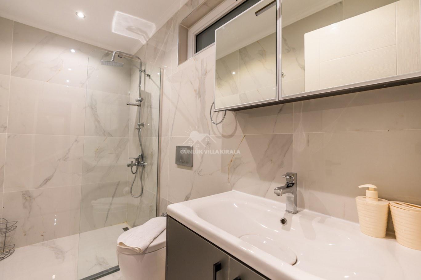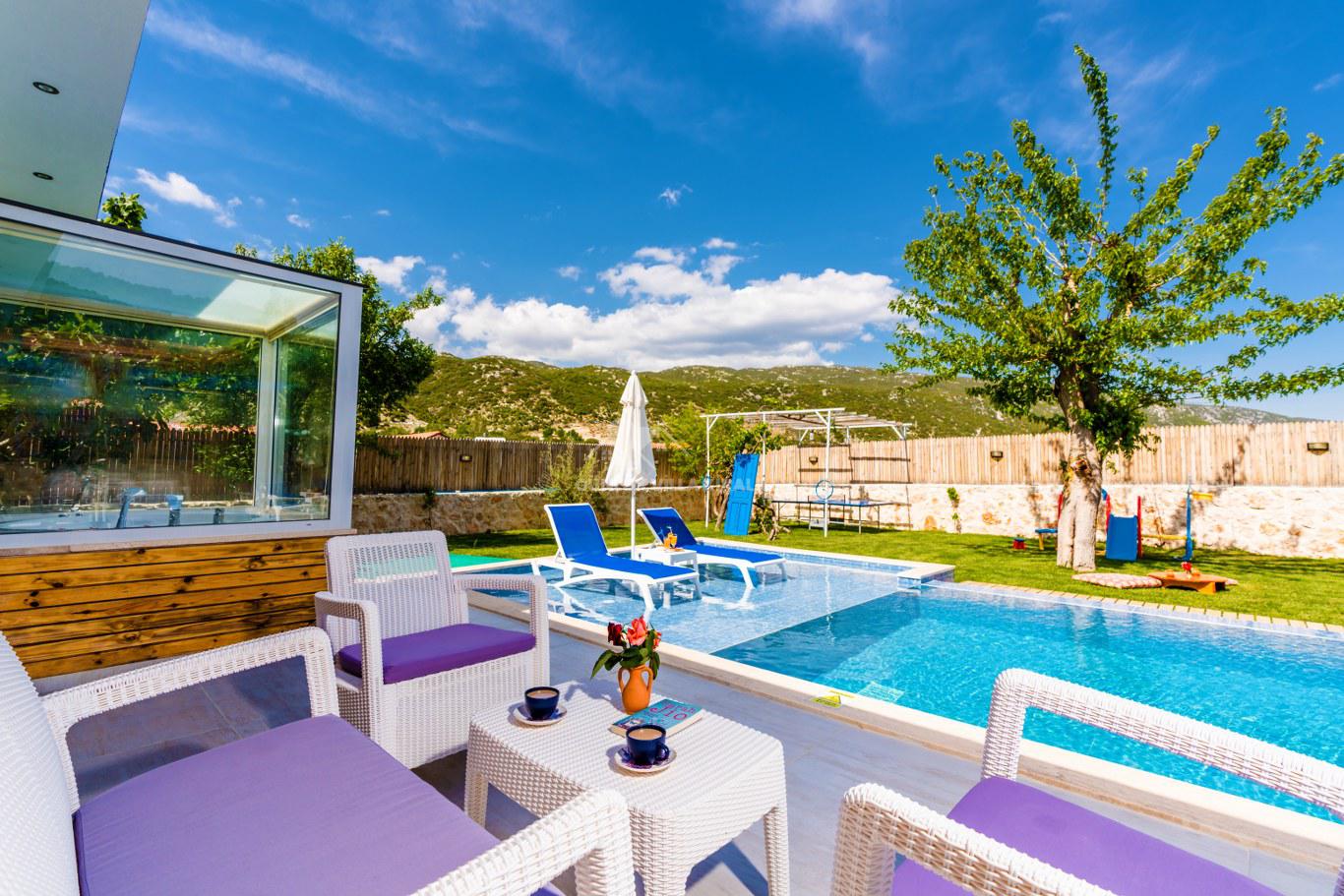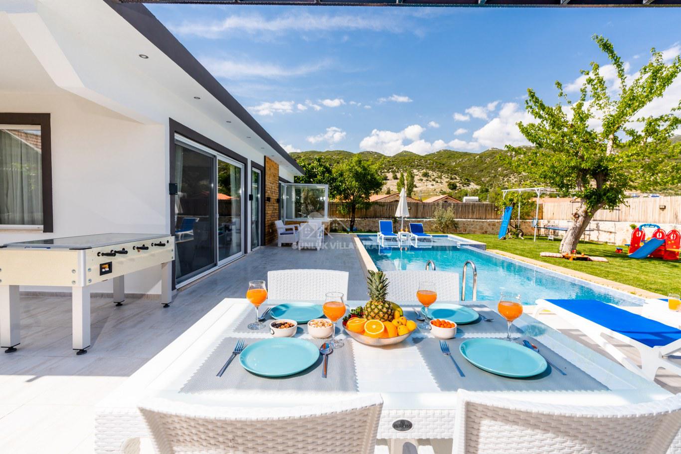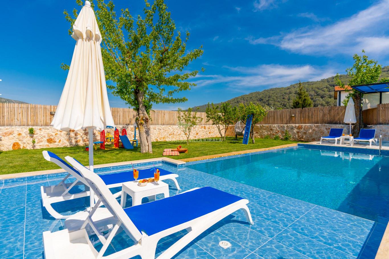 Villa Aylin, 4 kişilik konaklama kapasitesine sahiptir ve geniş yaşam alanlarıyla misafirlerine ferah bir ortam sunar. 2 yatak odası, 3yatak ve 2 banyosuyla, her bir misafirin ihtiyaçlarını karşılayacak şekilde düşünülmüştür. İç mekanlar modern bir tarzda dekore edilmiş olup, rahatlatıcı renk paleti ve şık mobilyalarla donatılmıştır. Villa Aylin, kendinizi huzurlu bir cennette hissetmenizi sağlayan geniş bir bahçeye sahiptir. Sevdiklerinizle beraber açık havada keyifli vakit geçirebilir, güneşin tadını çıkarabilir veya serin havuzda serinleyebilirsiniz. Villanın terası, muhteşem bir manzaraya sahiptir ve gün batımında romantik anların yaşanabileceği bir mekandır. Villa Bella, tatiliniz boyunca ihtiyacınız olabilecek tüm olanakları sunar. Tam donanımlı bir mutfak, modern elektronik eşyalar, temiz havlu ve çarşaflar gibi konforunuz için gerekli olan her şey bulunmaktadır. Ayrıca, ihtiyaçlarınız doğrultusunda ek hizmetler sağlayabilen deneyimli bir ekibe de sahiptir. Eğer isterseniz, araba kiralama, özel şef hizmeti veya tur düzenleme gibi taleplerinizi karşılamak için yardımcı olabilirler. Villa Aylin, rüya gibi bir tatilin kapılarını aralayan özel bir seçenektir. Doğanın kalbinde konumlanmış olması, size huzur dolu bir kaçış sunarken aynı zamanda çevredeki doğal güzellikleri keşfetme fırsatı da verir. Bu villa, size ve sevdiklerinize unutulmaz anılarla dolu bir tatil yaşatmayı hedefler.