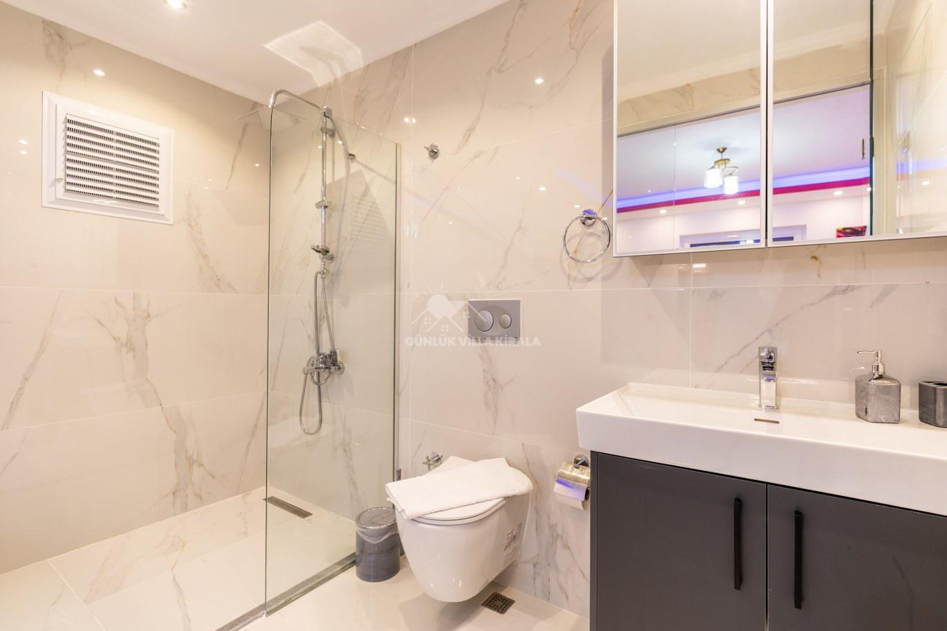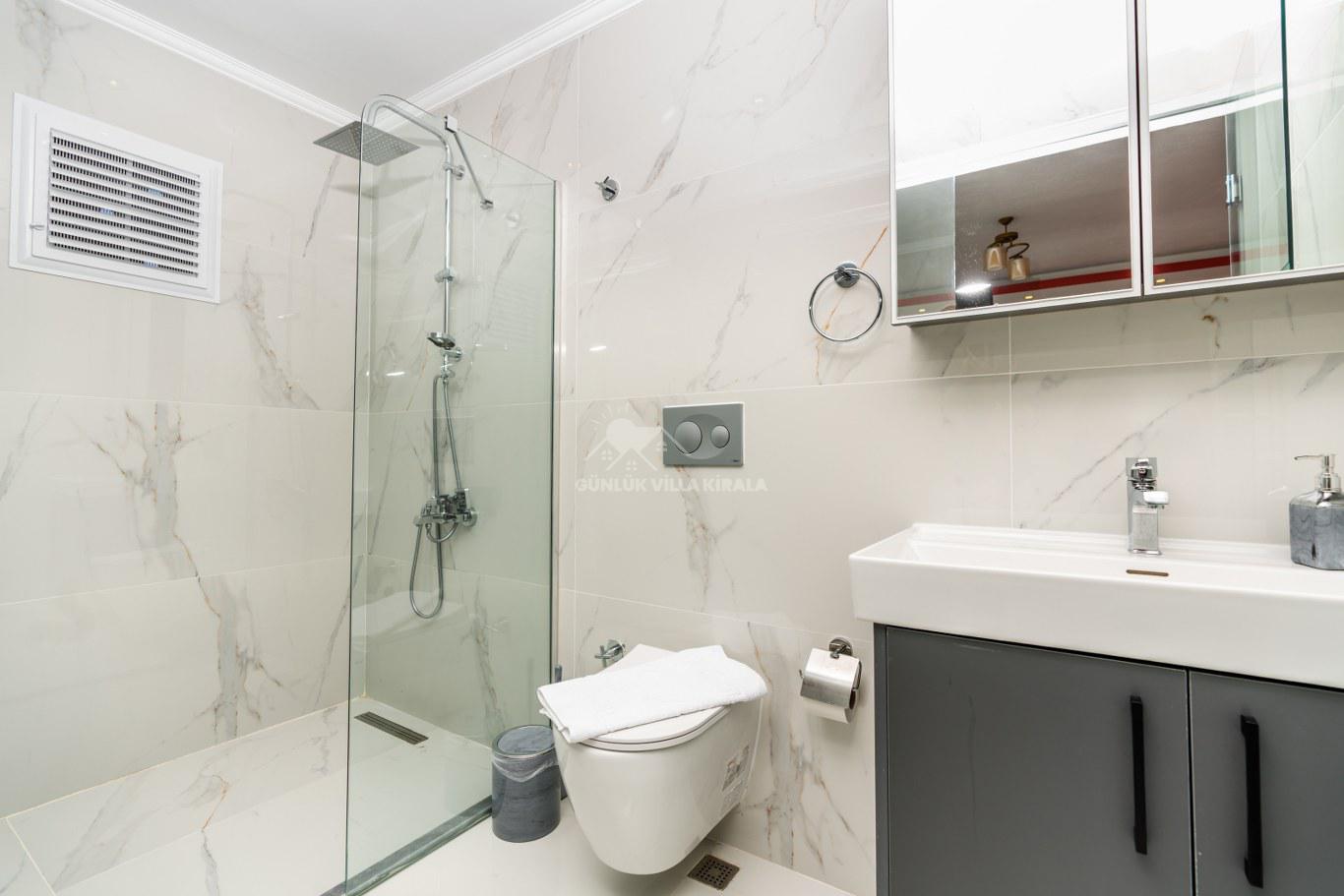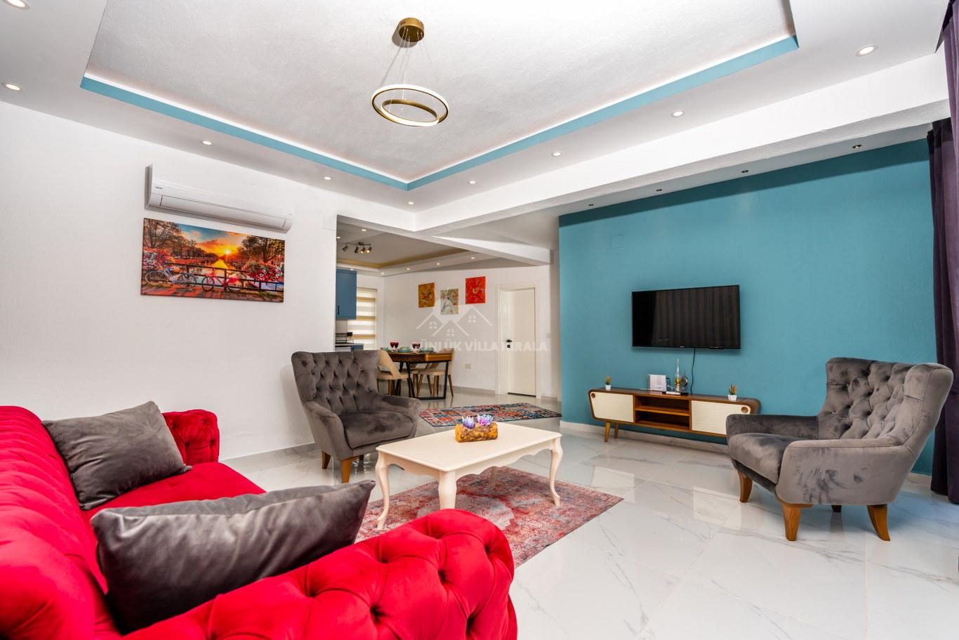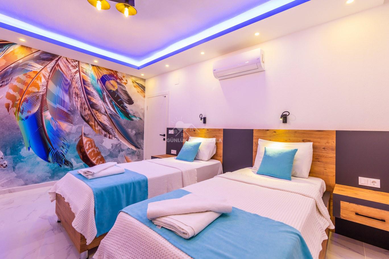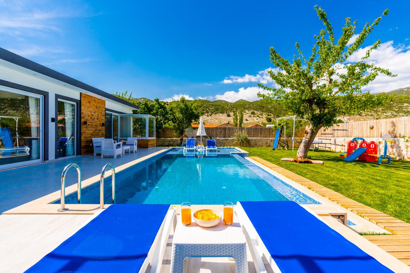 Villa Aylin, 4 kişilik konaklama kapasitesine sahiptir ve geniş yaşam alanlarıyla misafirlerine ferah bir ortam sunar. 2 yatak odası, 3yatak ve 2 banyosuyla, her bir misafirin ihtiyaçlarını karşılayacak şekilde düşünülmüştür. İç mekanlar modern bir tarzda dekore edilmiş olup, rahatlatıcı renk paleti ve şık mobilyalarla donatılmıştır. Villa Aylin, kendinizi huzurlu bir cennette hissetmenizi sağlayan geniş bir bahçeye sahiptir. Sevdiklerinizle beraber açık havada keyifli vakit geçirebilir, güneşin tadını çıkarabilir veya serin havuzda serinleyebilirsiniz. Villanın terası, muhteşem bir manzaraya sahiptir ve gün batımında romantik anların yaşanabileceği bir mekandır. Villa Bella, tatiliniz boyunca ihtiyacınız olabilecek tüm olanakları sunar. Tam donanımlı bir mutfak, modern elektronik eşyalar, temiz havlu ve çarşaflar gibi konforunuz için gerekli olan her şey bulunmaktadır. Ayrıca, ihtiyaçlarınız doğrultusunda ek hizmetler sağlayabilen deneyimli bir ekibe de sahiptir. Eğer isterseniz, araba kiralama, özel şef hizmeti veya tur düzenleme gibi taleplerinizi karşılamak için yardımcı olabilirler. Villa Aylin, rüya gibi bir tatilin kapılarını aralayan özel bir seçenektir. Doğanın kalbinde konumlanmış olması, size huzur dolu bir kaçış sunarken aynı zamanda çevredeki doğal güzellikleri keşfetme fırsatı da verir. Bu villa, size ve sevdiklerinize unutulmaz anılarla dolu bir tatil yaşatmayı hedefler.