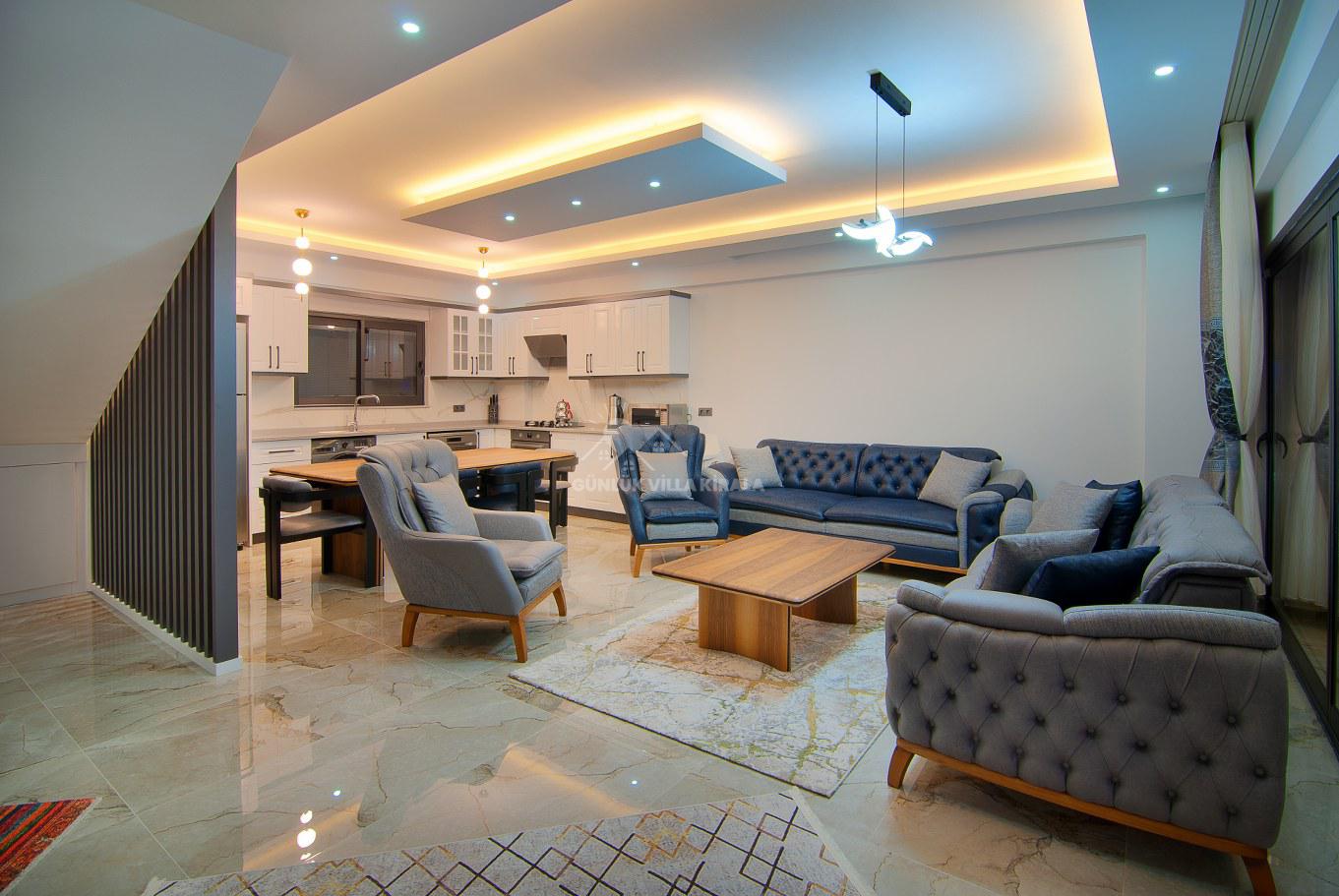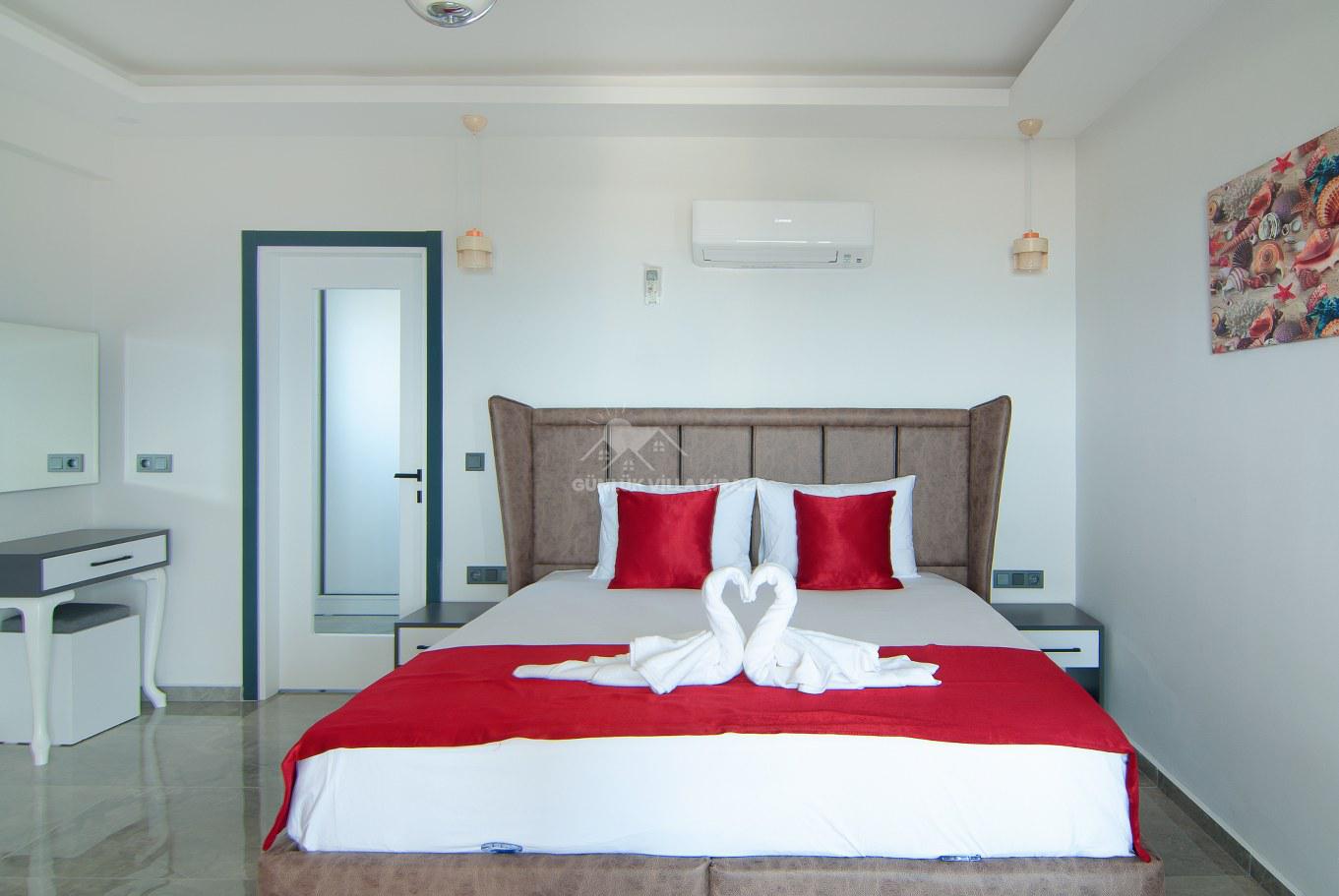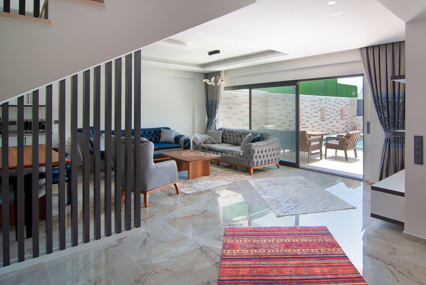 Fethiye bölgesindeki kiralık villamız konum olarak Eldirek bölgeesinde bulunmaktadır. Kiralık villamız 4 yatak odasından oluşmakta olup 8 kişi kapasitesindedir. Kiralık Villamızın yapımı 2023 senesinde bitmiş olup yeni bir villadır. Eldirek bölgesinde bulunan kiralık villa havuz terasında çocukların ve gençlerin eğlenmesi olanaklar mevcuttur. Havuz terasında bulunan masa tenisi ve çocuk kaydırağı ile güzel zaman geçirebilirsiniz ayrıca çocuk havuzu bulunan kiralık villamızın çocuklu aileler için güzel bir seçenek olmaktadır. Villamızın 2 ebeveyn yatak odasında jakuzi bulunmaktadır ayrıca geniş oturma grubu bulunan balkonlarda Fethiye merkezi ve fethiye denizini izleme şansını yakılayabilirsiniz. Kiralık villamızın giriş katında ise sizleri geniş bir amerikan mutfak bulunan mutfak karşılamktadır hemen sol tarafında ise kış aylarında villa kiralama düşünen müşterilerimiz için büyük ölçülerde bir kapalı havuz ayrıca sauna ve hamam bulunmaktadır.
