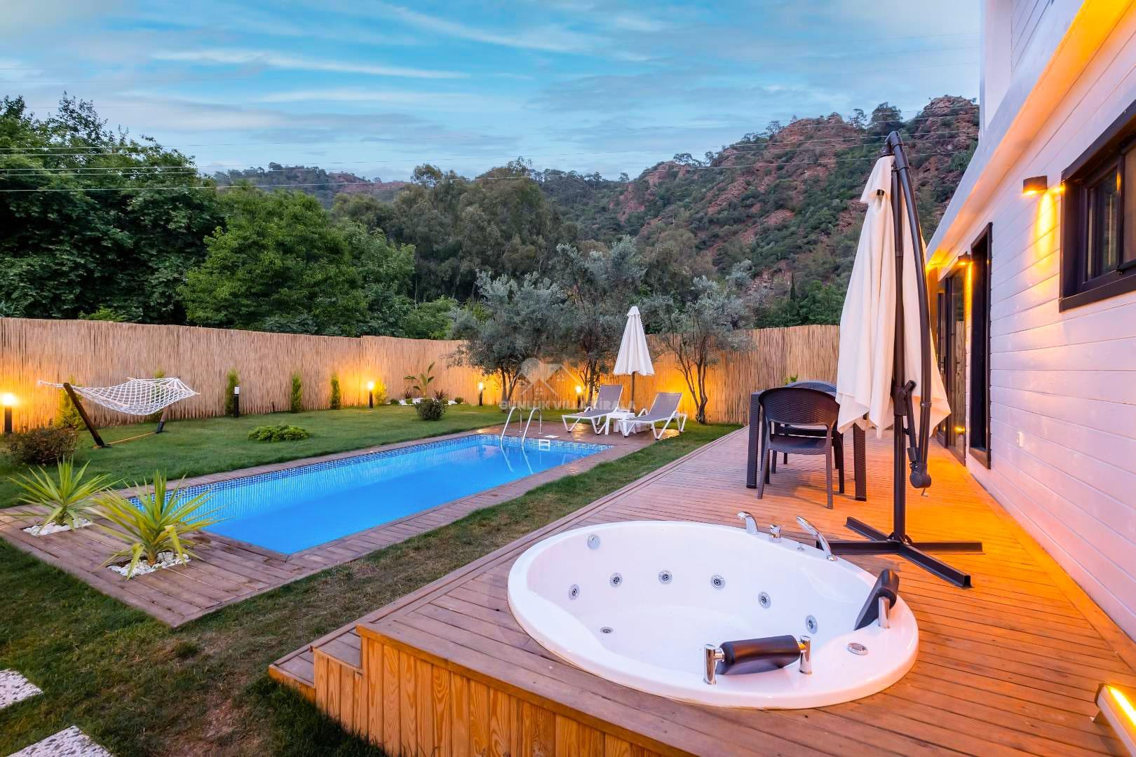 2022 yılında tamamlanan villamız, Fethiye Yanıklar bölgesinde orman ve doğa manzaralarına sahiptir. Villamız 2 kişilik konaklama kapasiteli olup, özellikle balayı çiftleri ve küçük aileler için ideal bir seçenektir. Havuz terasında jakuzisi bulunan korunaklı villamızda muhafazakar aileler ve balayı çiftleri muhteşem doğa manzarası eşliğinde keyifli tatil deneyimleri yaşayabilirler. Doğanın modern şıklığı ile yeşilin iç içe geçtiği villamız, tatilinizin en ince detaylarına kadar planlanmıştır. Tüm yıl boyunca konforlu ve izole bir ortam sunan villamız, misafirlerimizin beklentilerini karşılamak için tasarlanmıştır. Fethiye'de tatil yapmak isteyenler için kolay ulaşım imkanına sahip olan villamız, plaja sadece birkaç dakikalık sürüş mesafesindedir. Karaot, Katrancı, Akmaz ve Günlüklü koylarına da kolaylıkla ulaşabilirsiniz.
