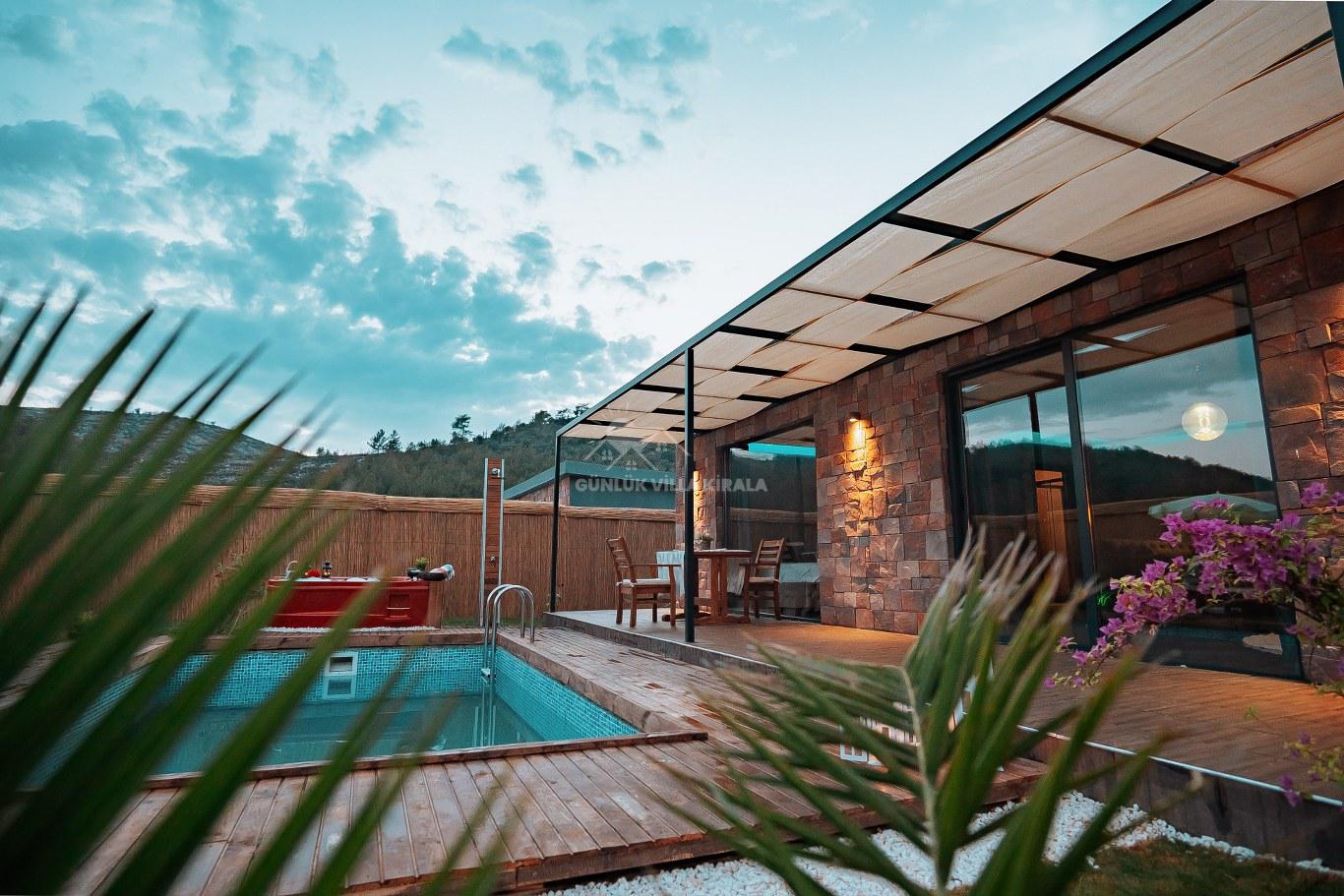 Fethiye Hisarönü mevkiinde bulunan muhafazakar villamız 1 yatak odası ile 2 kişilik konaklama kapasitesine sahiptir. Modern tasarım ve mimariye sahip villamız içerisinde misafirlerimiz için her şey düşünülmüş olup konforlu bir tatil imkânı misafirlerimize sunulmaktadır. Bahçe bölümünde bulunan Jakuzi, bahçe salıncağı gibi seçenekler tatilinizde özel zamanlar geçirmek için misafirlerimize sunulmaktadır.