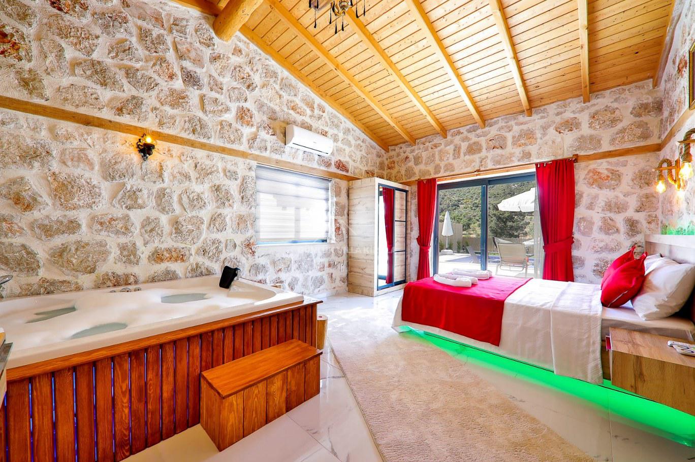 Villa Keklik, taş ve ahşap mimarisi ile dikkat çeker. Kiralık villa içerisindeki ahşap dokusuyla size muhteşem bir konfor sunar. Büyük havuzu ve jakuzili geniş havuzu ile yeşillikler içerisindeki bu villa bahçesinde keyifli zaman geçirebilirsiniz. Ayrıca futbol kalesi ve badminton filesi gibi olanaklar da bahçede mevcuttur. Villa Keklik, lüks ve konforlu bir tatil için ihtiyaç duyabileceğiniz her şeyi düşünerek hazırlanmıştır. Ayrıca, sauna eklemesiyle de villanın dış mekanında rahatlayabilirsiniz.