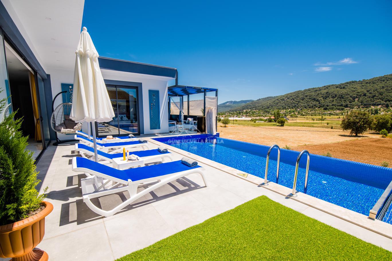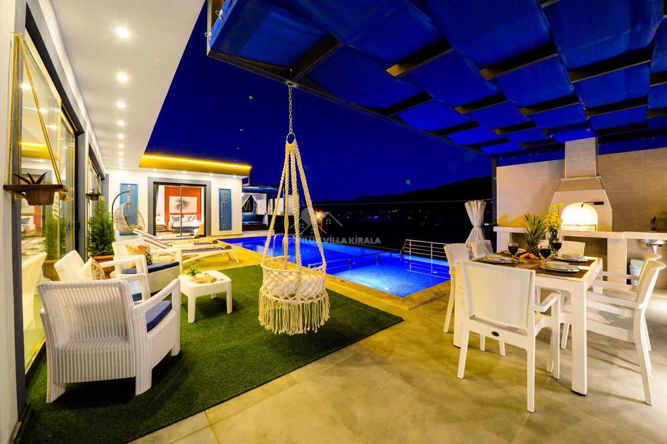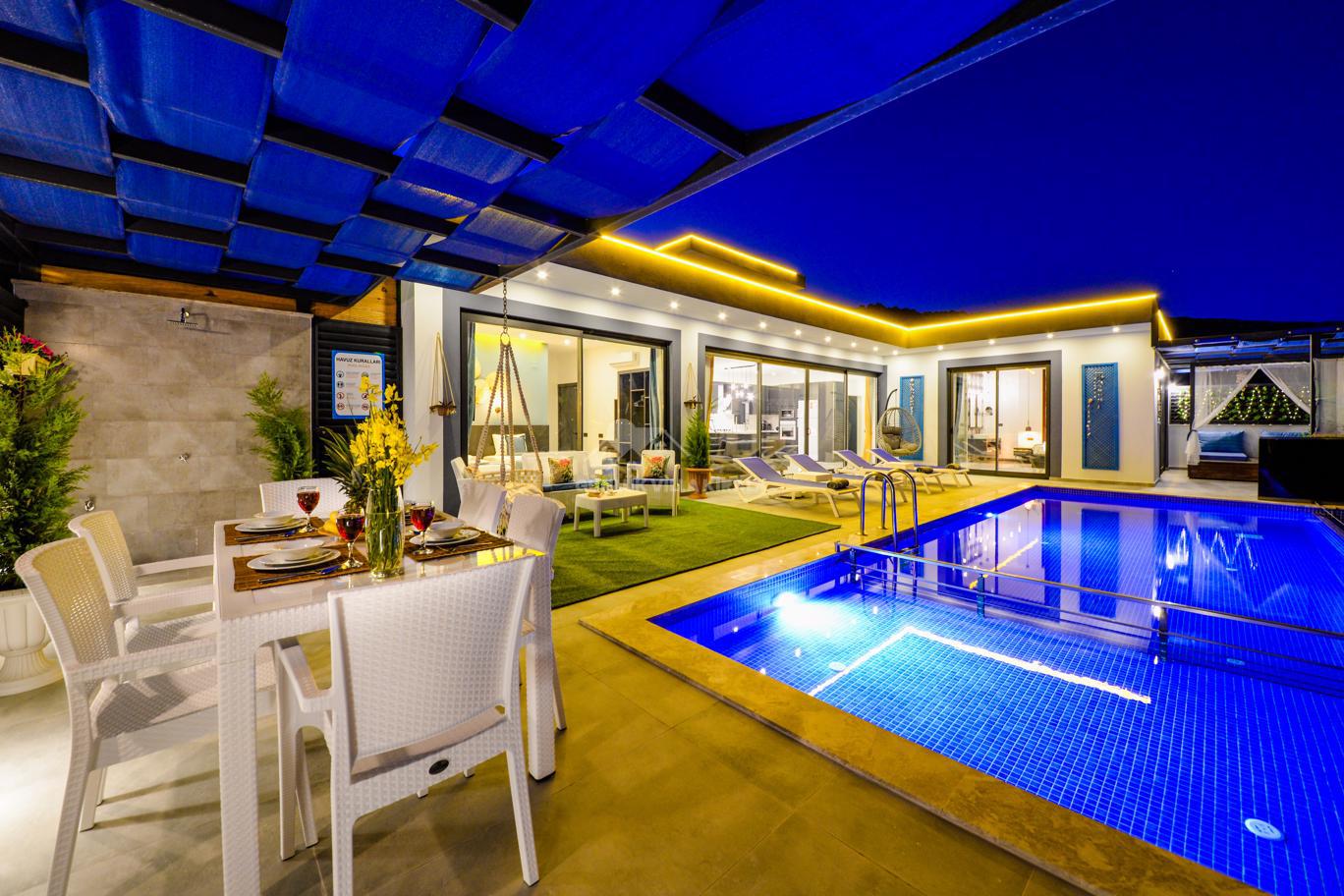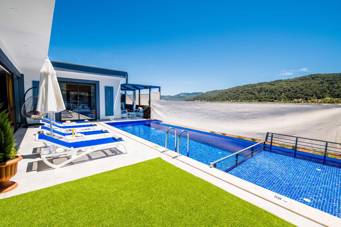 Kalkan'ın huzurlu köyü Sarıbelen'de bulunan Villa Lavinya, sadece 15-20 dakikalık mesafeyle Kalkan merkezinden ayrılarak doğanın sakinliğini ve temiz havasını sunuyor. Bu villa, doğa ile iç içe, şehir hayatının gürültüsünden uzakta eşsiz bir tatil imkanı sağlamaktadır. Villa Lavinya, özel yüzme havuzuyla birlikte, harika doğa manzarasına sahip rahat ve şık odalarıyla keyifli bir tatil deneyimi sunmaktadır. Doğal güzellikler eşliğinde sessiz ve sakin bir ortamda dinlenmek için mükemmel bir seçenektir. Villa, 2 yatak odasıyla 4 kişiye kadar konaklama kapasitesine sahiptir ve havuz ve teras alanı da koruma altındadır. Ayrıca çocuklu misafirlerimiz için çocuk havuzu da bulunmaktadır. Tatilinizi tamamlayıcı özelliklerden biri olan sauna ve jakuzi ise yatak odasında yer alır ve misafirlerimize bir yılın yorgunluğunu atmaları için ideal bir fırsat sunar. Villa Lavinya, tam donanımlı mutfağı ve tatilinizi eksiksiz hale getirecek diğer detaylarıyla izole ve kalabalıktan uzak bir tatilin keyfini çıkarmanızı sağlar. İhtiyaç duyabileceğiniz her şeyi bir arada bulabileceğiniz bu villa, güvenli ve keyifli bir tatil imkanı sunmaktadır.