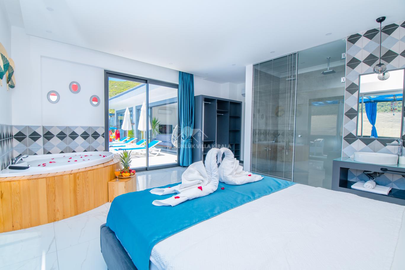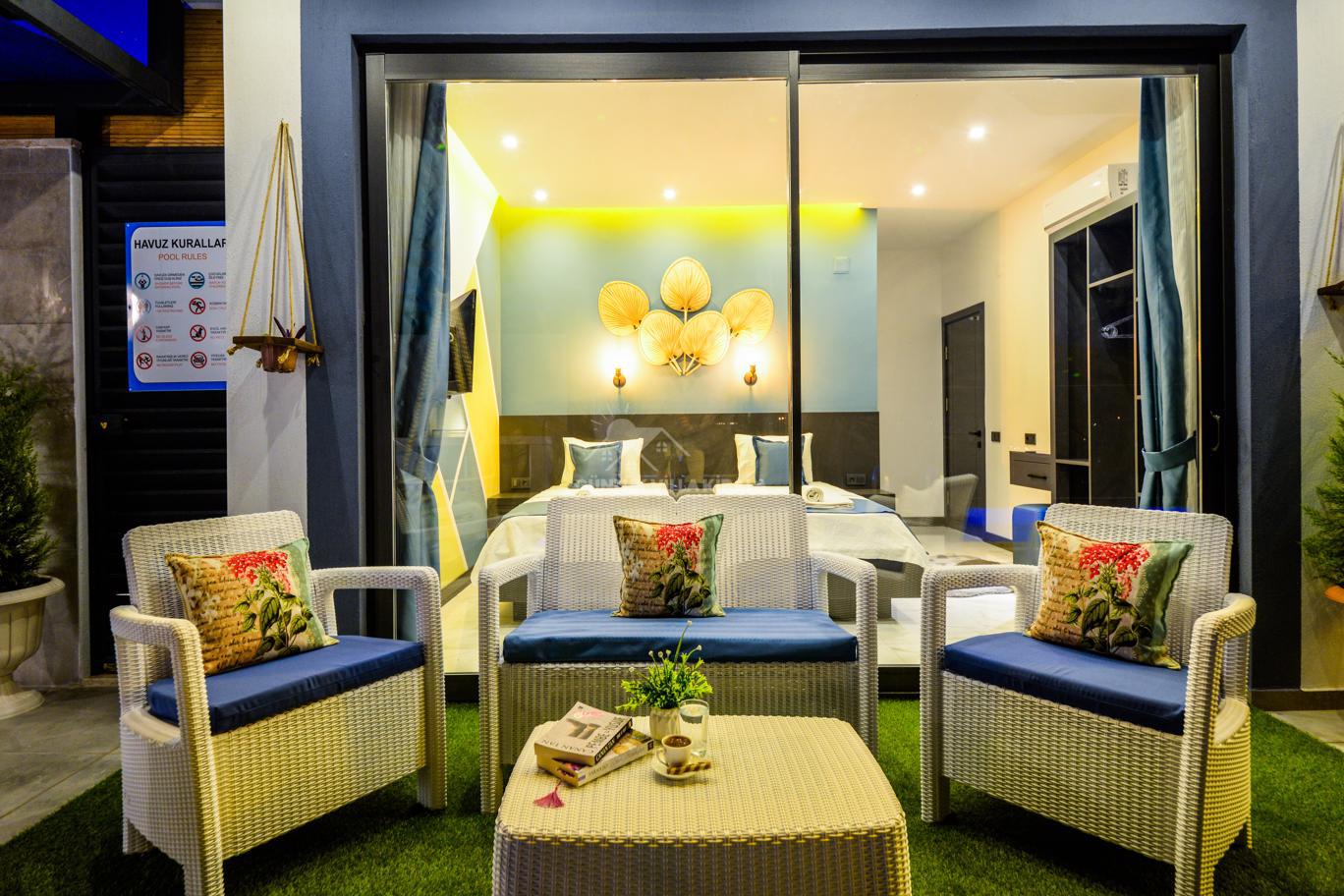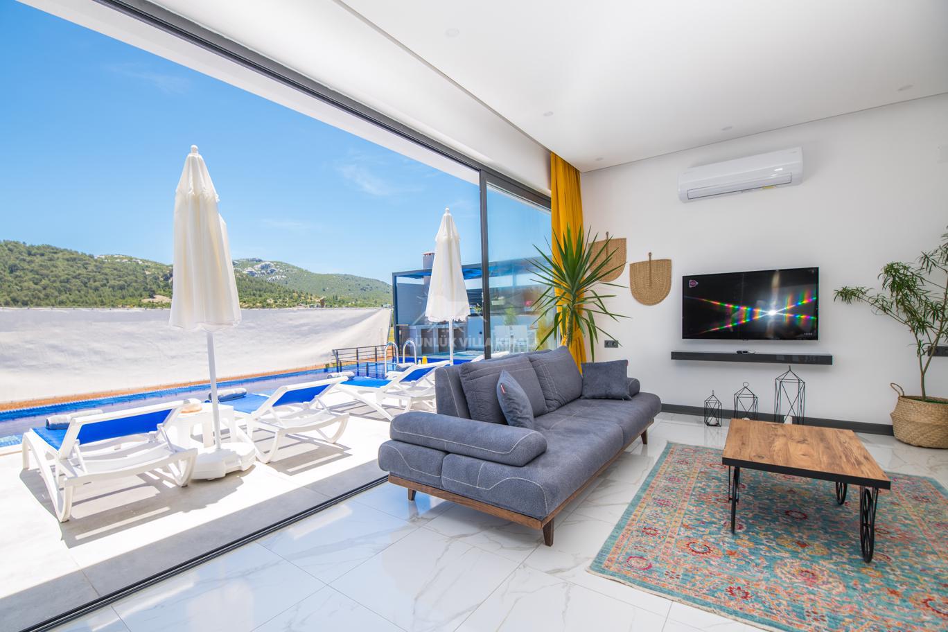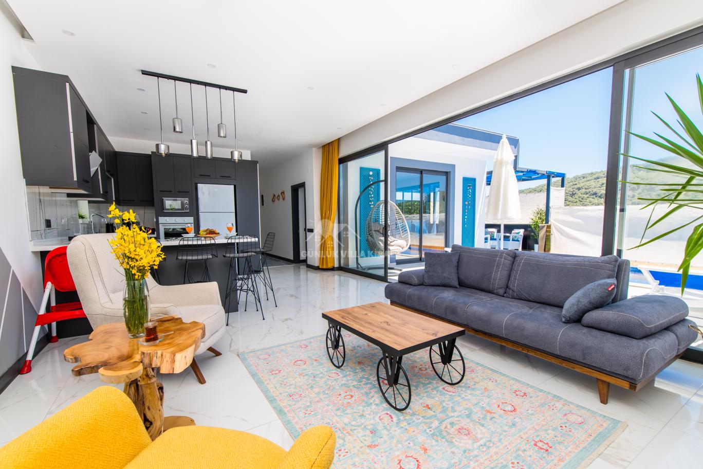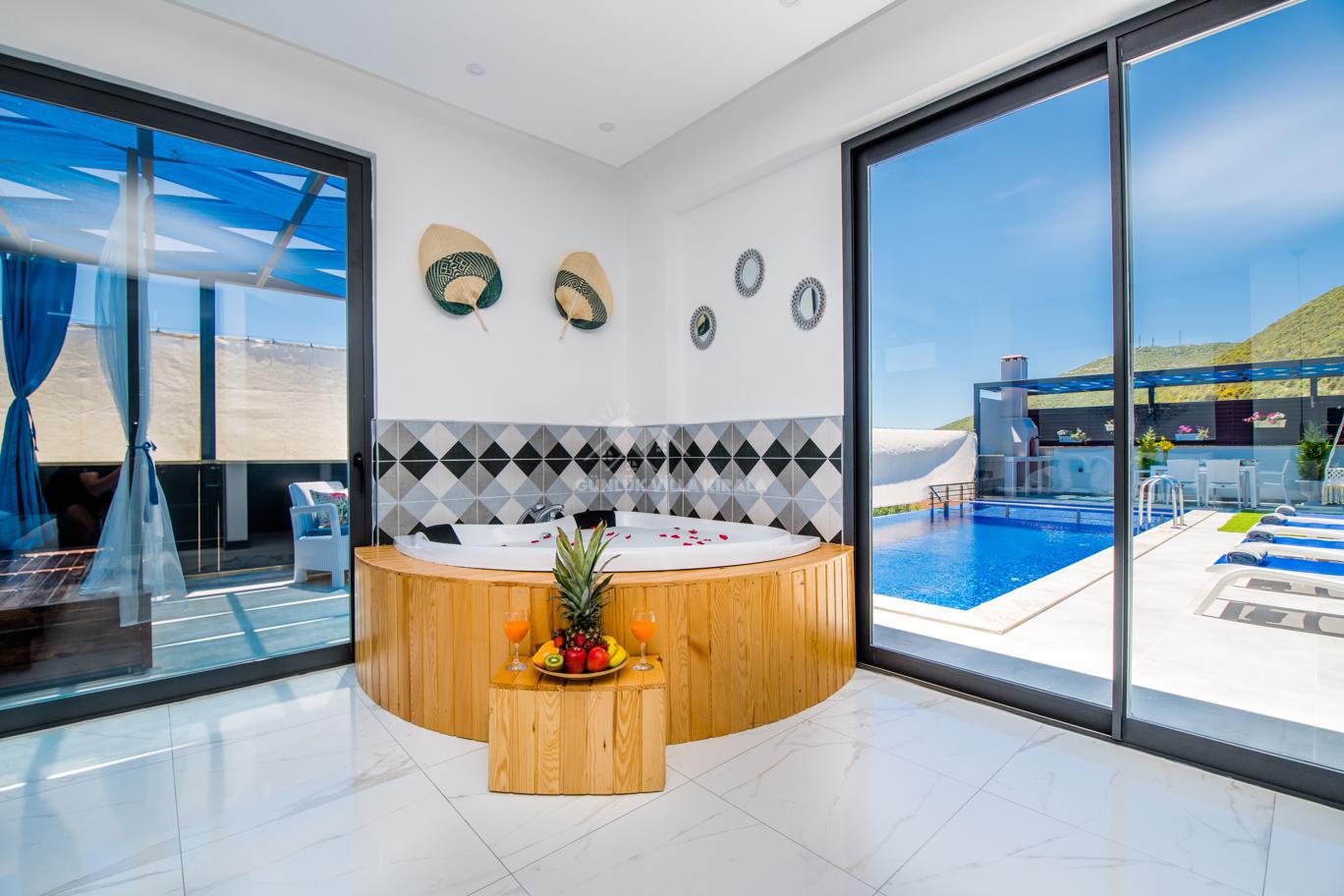 Kalkan'ın huzurlu köyü Sarıbelen'de bulunan Villa Lavinya, sadece 15-20 dakikalık mesafeyle Kalkan merkezinden ayrılarak doğanın sakinliğini ve temiz havasını sunuyor. Bu villa, doğa ile iç içe, şehir hayatının gürültüsünden uzakta eşsiz bir tatil imkanı sağlamaktadır. Villa Lavinya, özel yüzme havuzuyla birlikte, harika doğa manzarasına sahip rahat ve şık odalarıyla keyifli bir tatil deneyimi sunmaktadır. Doğal güzellikler eşliğinde sessiz ve sakin bir ortamda dinlenmek için mükemmel bir seçenektir. Villa, 2 yatak odasıyla 4 kişiye kadar konaklama kapasitesine sahiptir ve havuz ve teras alanı da koruma altındadır. Ayrıca çocuklu misafirlerimiz için çocuk havuzu da bulunmaktadır. Tatilinizi tamamlayıcı özelliklerden biri olan sauna ve jakuzi ise yatak odasında yer alır ve misafirlerimize bir yılın yorgunluğunu atmaları için ideal bir fırsat sunar. Villa Lavinya, tam donanımlı mutfağı ve tatilinizi eksiksiz hale getirecek diğer detaylarıyla izole ve kalabalıktan uzak bir tatilin keyfini çıkarmanızı sağlar. İhtiyaç duyabileceğiniz her şeyi bir arada bulabileceğiniz bu villa, güvenli ve keyifli bir tatil imkanı sunmaktadır.