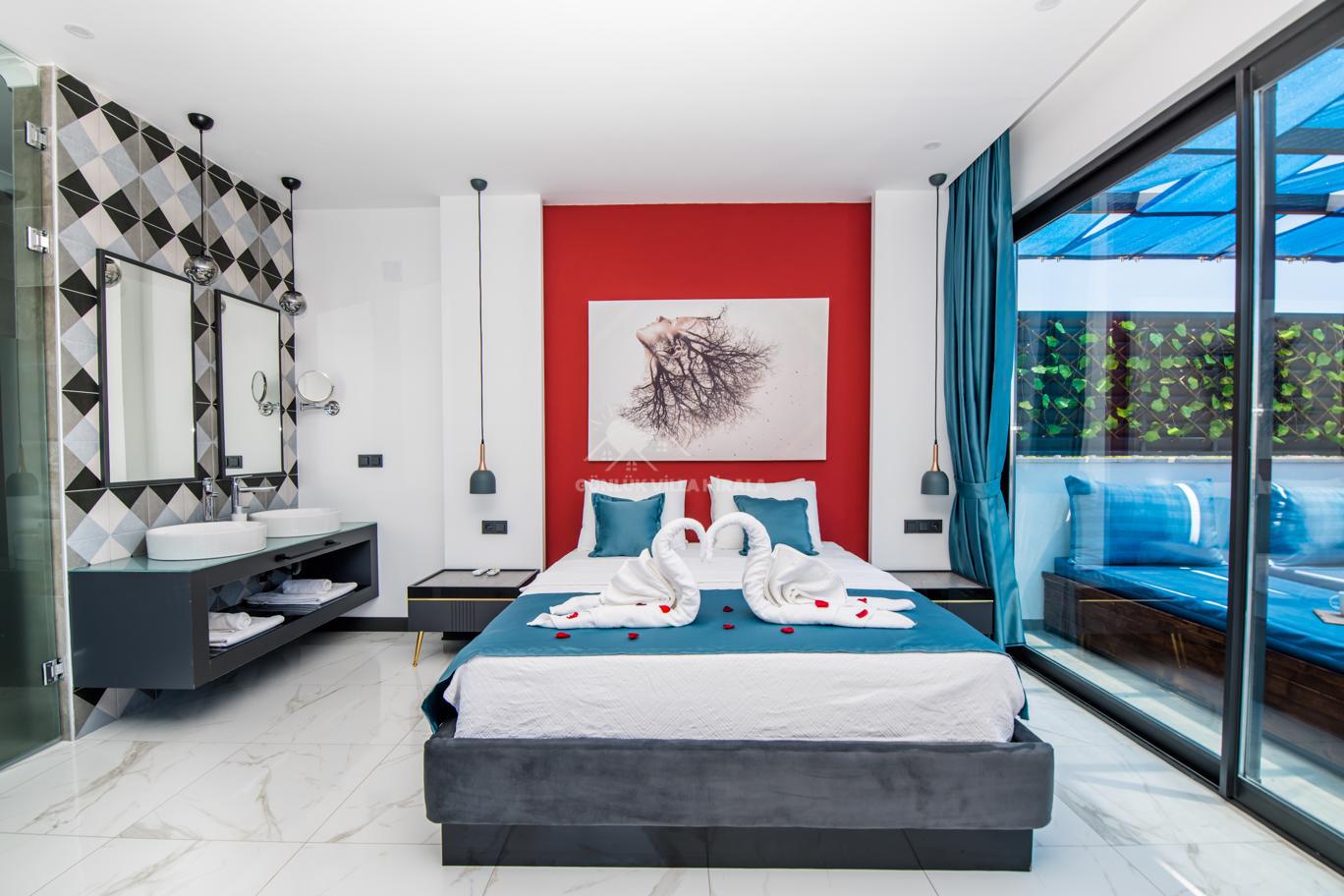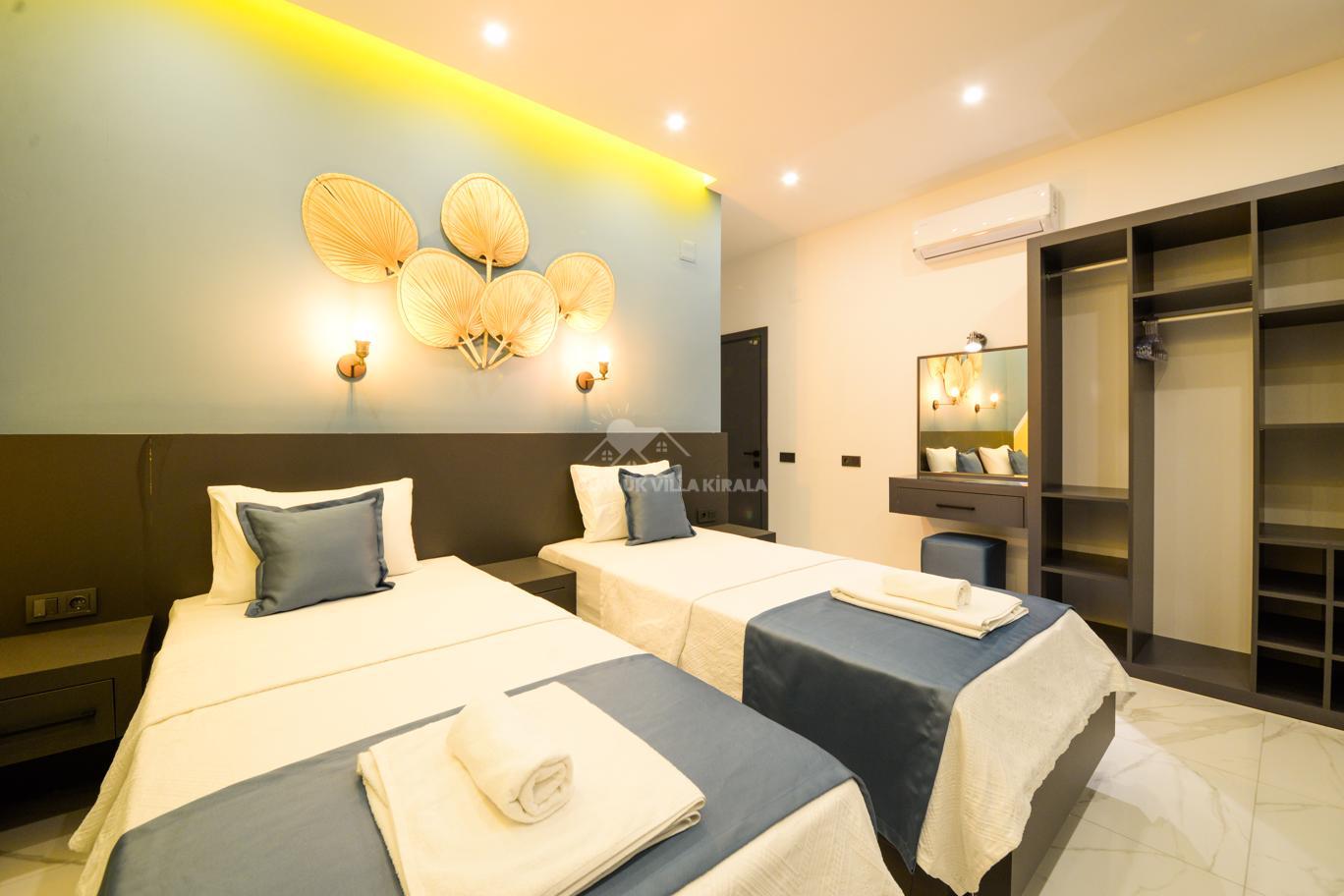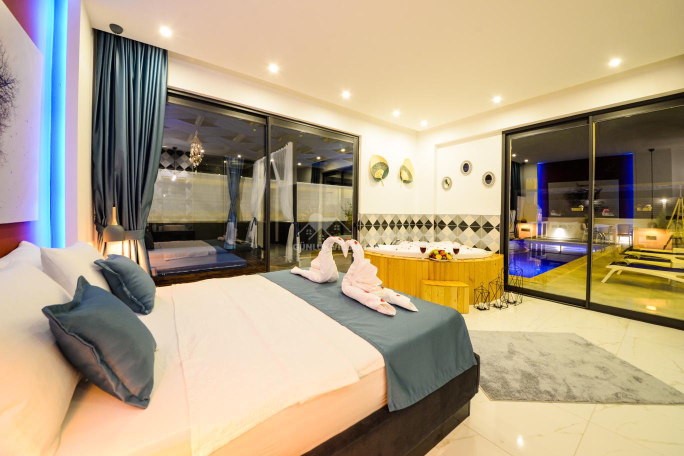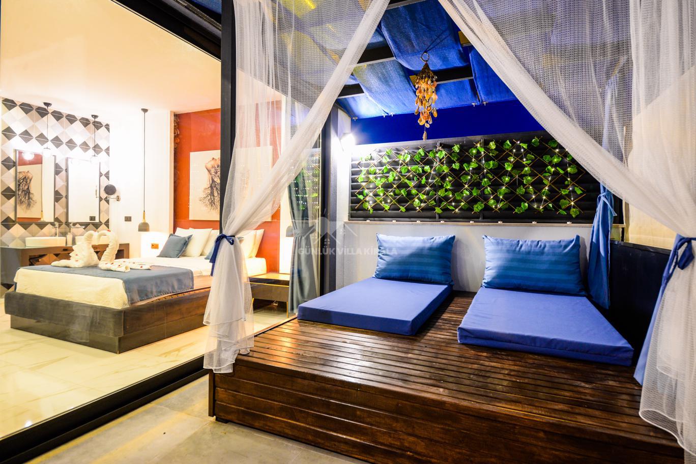 Kalkan'ın huzurlu köyü Sarıbelen'de bulunan Villa Lavinya, sadece 15-20 dakikalık mesafeyle Kalkan merkezinden ayrılarak doğanın sakinliğini ve temiz havasını sunuyor. Bu villa, doğa ile iç içe, şehir hayatının gürültüsünden uzakta eşsiz bir tatil imkanı sağlamaktadır. Villa Lavinya, özel yüzme havuzuyla birlikte, harika doğa manzarasına sahip rahat ve şık odalarıyla keyifli bir tatil deneyimi sunmaktadır. Doğal güzellikler eşliğinde sessiz ve sakin bir ortamda dinlenmek için mükemmel bir seçenektir. Villa, 2 yatak odasıyla 4 kişiye kadar konaklama kapasitesine sahiptir ve havuz ve teras alanı da koruma altındadır. Ayrıca çocuklu misafirlerimiz için çocuk havuzu da bulunmaktadır. Tatilinizi tamamlayıcı özelliklerden biri olan sauna ve jakuzi ise yatak odasında yer alır ve misafirlerimize bir yılın yorgunluğunu atmaları için ideal bir fırsat sunar. Villa Lavinya, tam donanımlı mutfağı ve tatilinizi eksiksiz hale getirecek diğer detaylarıyla izole ve kalabalıktan uzak bir tatilin keyfini çıkarmanızı sağlar. İhtiyaç duyabileceğiniz her şeyi bir arada bulabileceğiniz bu villa, güvenli ve keyifli bir tatil imkanı sunmaktadır.