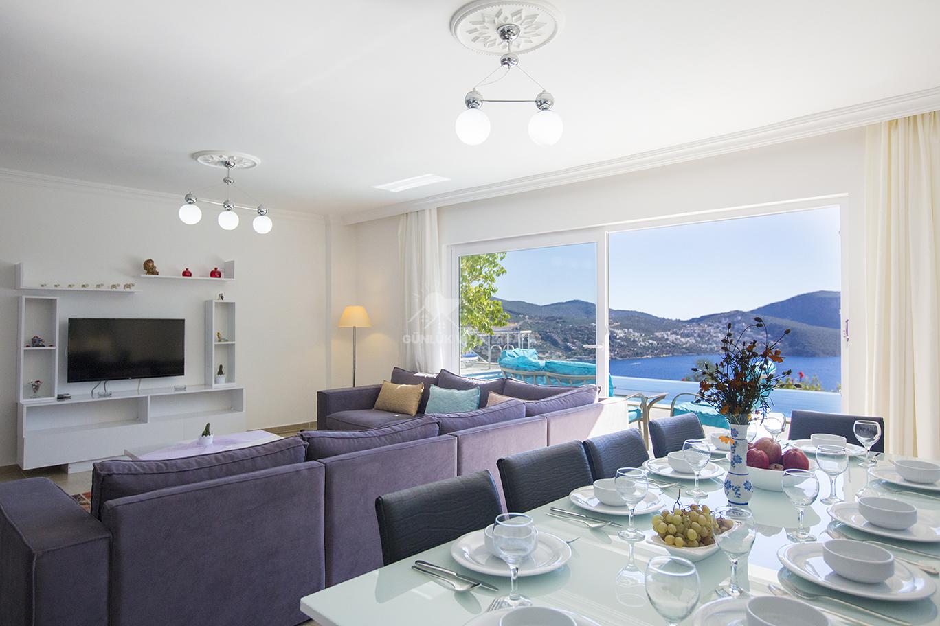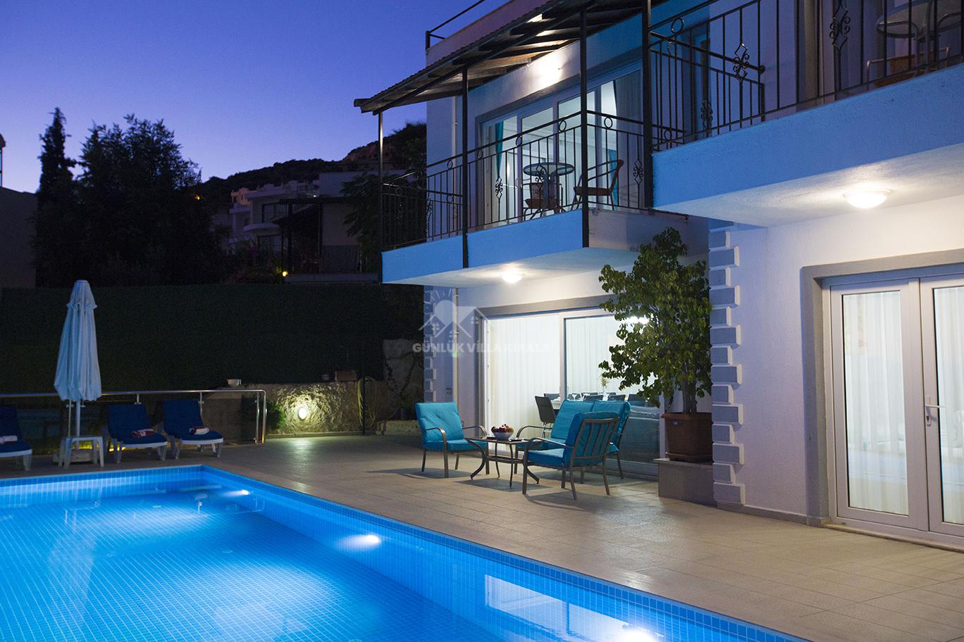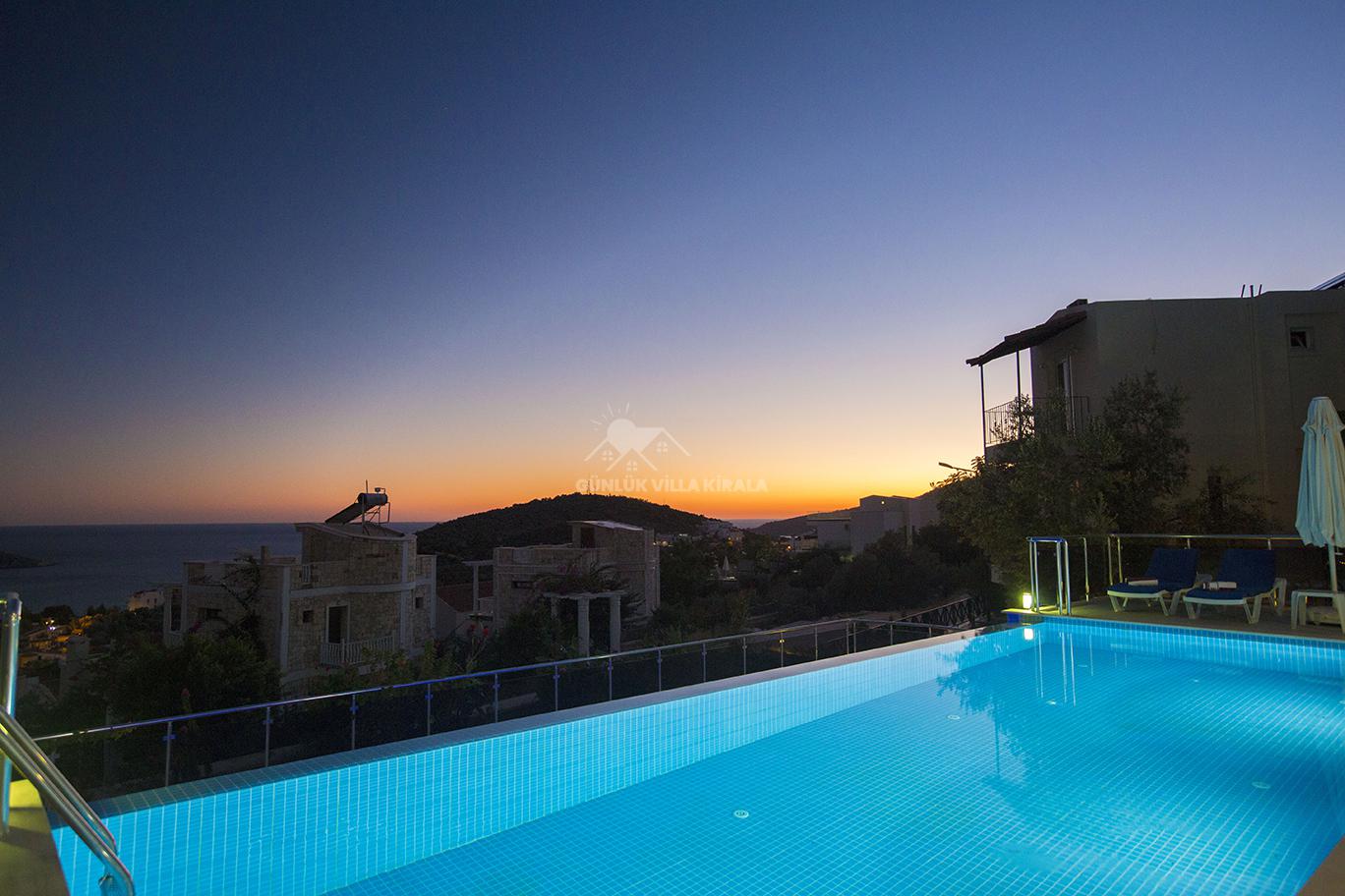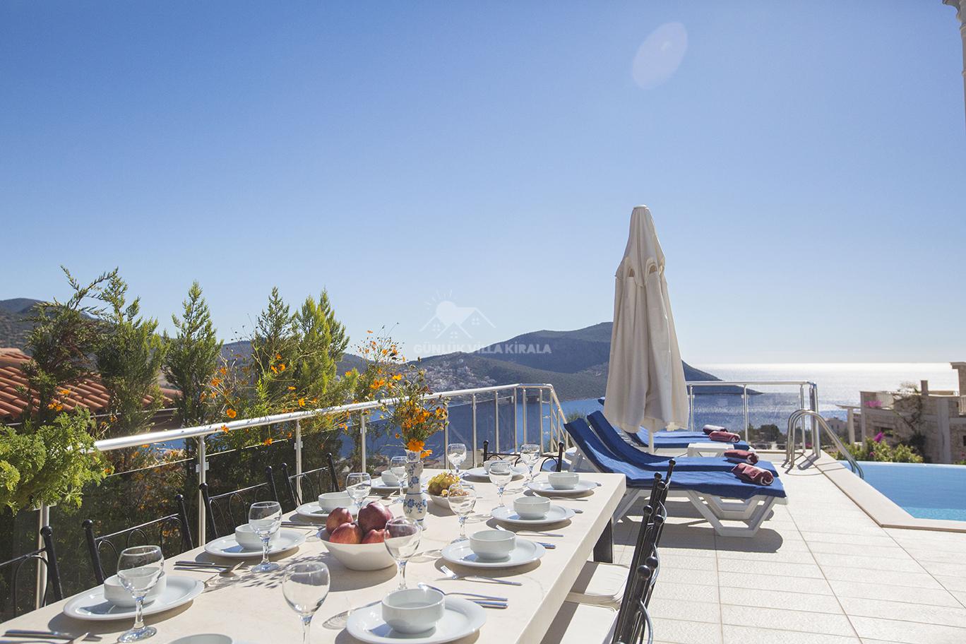 Kalkan'ın merkezinde bulunan Villa Mehtap, deniz, market ve restoranlara yakın konumuyla dikkat çekiyor. Misafirlerimize unutulmaz bir villa tatili sunmak için özenle tasarlanan Villa Mehtap, altı yatak odasıyla 11 kişiye kadar konaklama imkanı sağlamaktadır. Büyük aileler ve arkadaş grupları için mükemmel bir seçenek olan bu kiralık yazlık, Kalkan'ın benzersiz deniz manzarasını ve eşsiz gün batımını kesintisiz bir şekilde izleme fırsatı sunmaktadır. Tatiliniz için her türlü detayın düşünüldüğü villamızda, sadece valizlerinizi hazırlayıp gelmeniz yeterlidir. Size özel bir tatil deneyimi sunan Villa Mehtap, Kalkan merkezine ve denize yaklaşık 1 kilometre mesafede konumlanmaktadır. Böylece hem merkezin hareketli atmosferinden faydalanabilir hem de sakinlik ve huzurun tadını çıkarabilirsiniz. Villa Mehtap'ın eşsiz deniz manzarası, gün boyu size unutulmaz bir tatil deneyimi sunacak. Birbirinden ferah ve rahat yatak odalarıyla donatılmış Villa Mehtap, geniş aileler ve gruplar için idealdir. Kalkan'ın güzelliklerini keşfettikten sonra villamıza dönüp rahatlayabilir, özel havuzun keyfini çıkarabilirsiniz. Ayrıca, tam donanımlı bir mutfak ve konforlu bir oturma alanı da mevcuttur. Villa Mehtap, size göz alıcı deniz manzarasını sunan, konforlu ve keyifli bir tatil için mükemmel bir seçenektir.