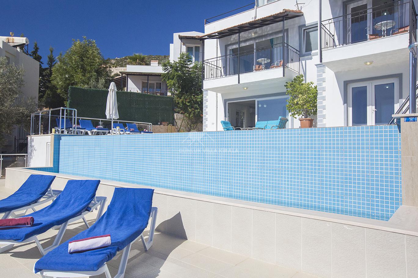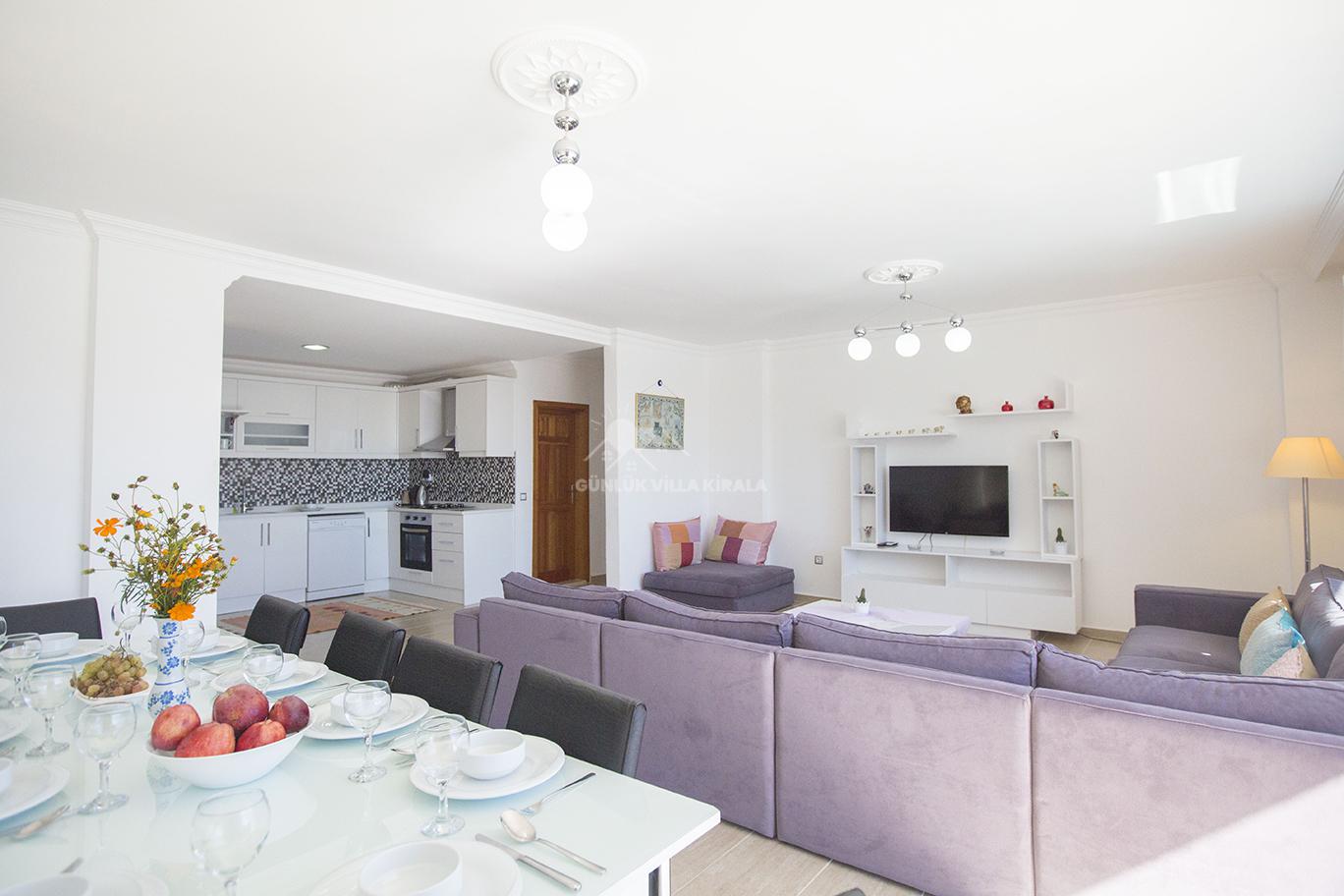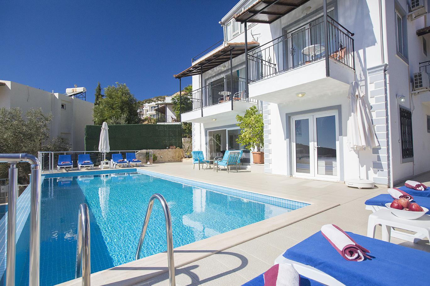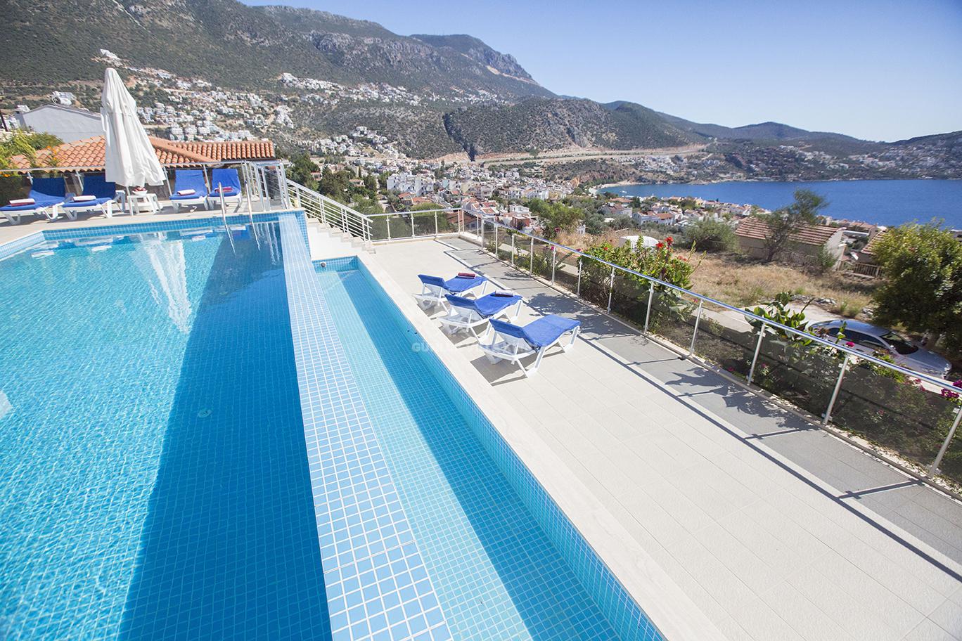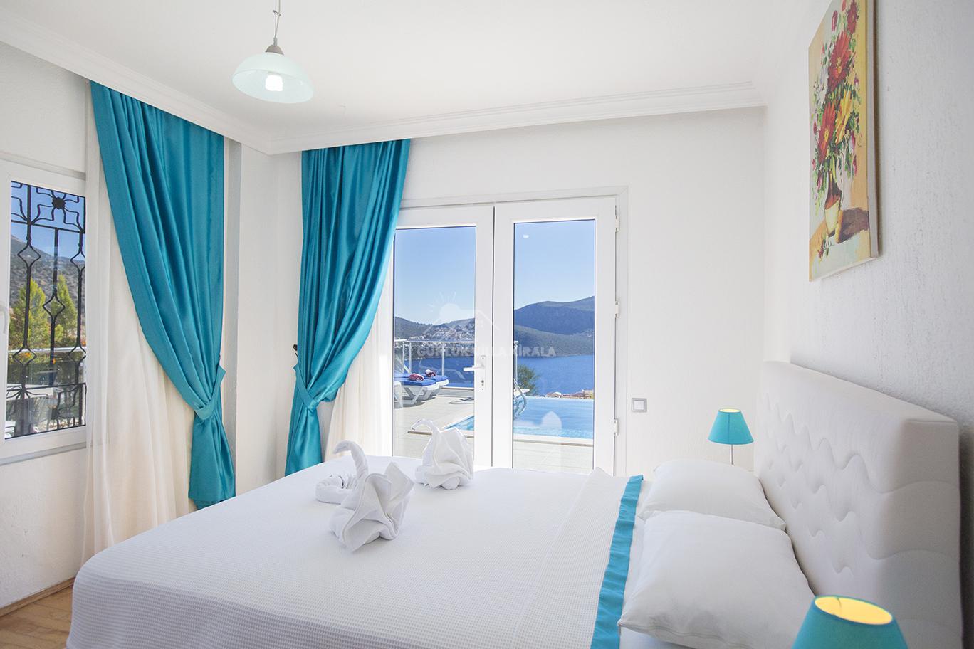 Kalkan'ın merkezinde bulunan Villa Mehtap, deniz, market ve restoranlara yakın konumuyla dikkat çekiyor. Misafirlerimize unutulmaz bir villa tatili sunmak için özenle tasarlanan Villa Mehtap, altı yatak odasıyla 11 kişiye kadar konaklama imkanı sağlamaktadır. Büyük aileler ve arkadaş grupları için mükemmel bir seçenek olan bu kiralık yazlık, Kalkan'ın benzersiz deniz manzarasını ve eşsiz gün batımını kesintisiz bir şekilde izleme fırsatı sunmaktadır. Tatiliniz için her türlü detayın düşünüldüğü villamızda, sadece valizlerinizi hazırlayıp gelmeniz yeterlidir. Size özel bir tatil deneyimi sunan Villa Mehtap, Kalkan merkezine ve denize yaklaşık 1 kilometre mesafede konumlanmaktadır. Böylece hem merkezin hareketli atmosferinden faydalanabilir hem de sakinlik ve huzurun tadını çıkarabilirsiniz. Villa Mehtap'ın eşsiz deniz manzarası, gün boyu size unutulmaz bir tatil deneyimi sunacak. Birbirinden ferah ve rahat yatak odalarıyla donatılmış Villa Mehtap, geniş aileler ve gruplar için idealdir. Kalkan'ın güzelliklerini keşfettikten sonra villamıza dönüp rahatlayabilir, özel havuzun keyfini çıkarabilirsiniz. Ayrıca, tam donanımlı bir mutfak ve konforlu bir oturma alanı da mevcuttur. Villa Mehtap, size göz alıcı deniz manzarasını sunan, konforlu ve keyifli bir tatil için mükemmel bir seçenektir.