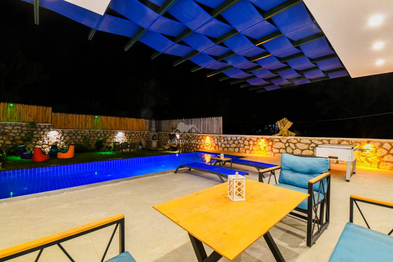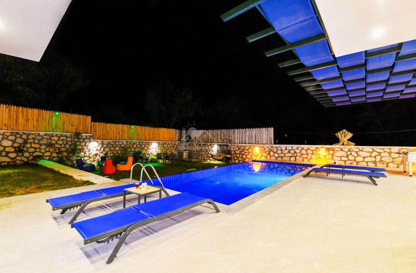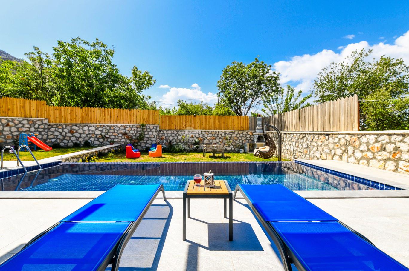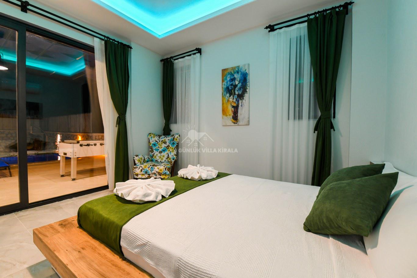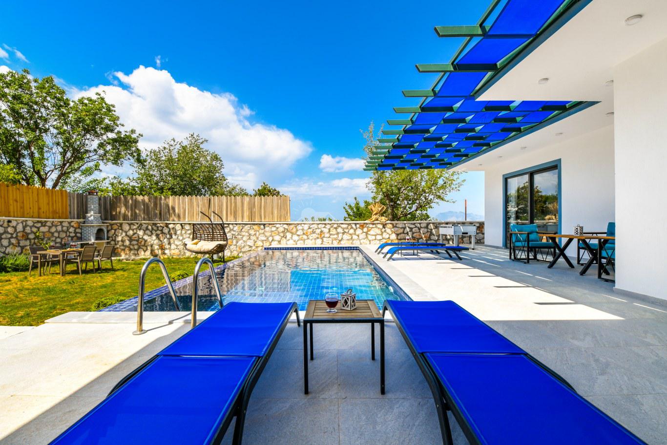 Kalkan Üzümlü bölgesinde, doğa içersinde bir tatil deneyimi sunanmuhafazakar kiralık villamızı tanıtmaktan mutluluk duyarız. 2 yatak odalı ve 4 kişi kapasiteli olan bu özel yüzme havuzlu villa, 2021 yılında tamamlanmış olup modern bir tasarıma sahiptir. Özellikle balayı çiftleri ve çocuklu aileler için ideal bir seçenek olan bu villa, sessizlik ve huzur arayan misafirlerimize geniş havuz terası ve bahçe alanında rahat bir tatil imkanı sunmaktadır. Ayrıca TV sisteminde Netflix gibi platformlardan film izleyebilme imkanı da bulunmaktadır. Unutulmaz bir tatil için villamızın tüm yatak odalarından havuz terasına çıkış imkanı da sunulmaktadır.