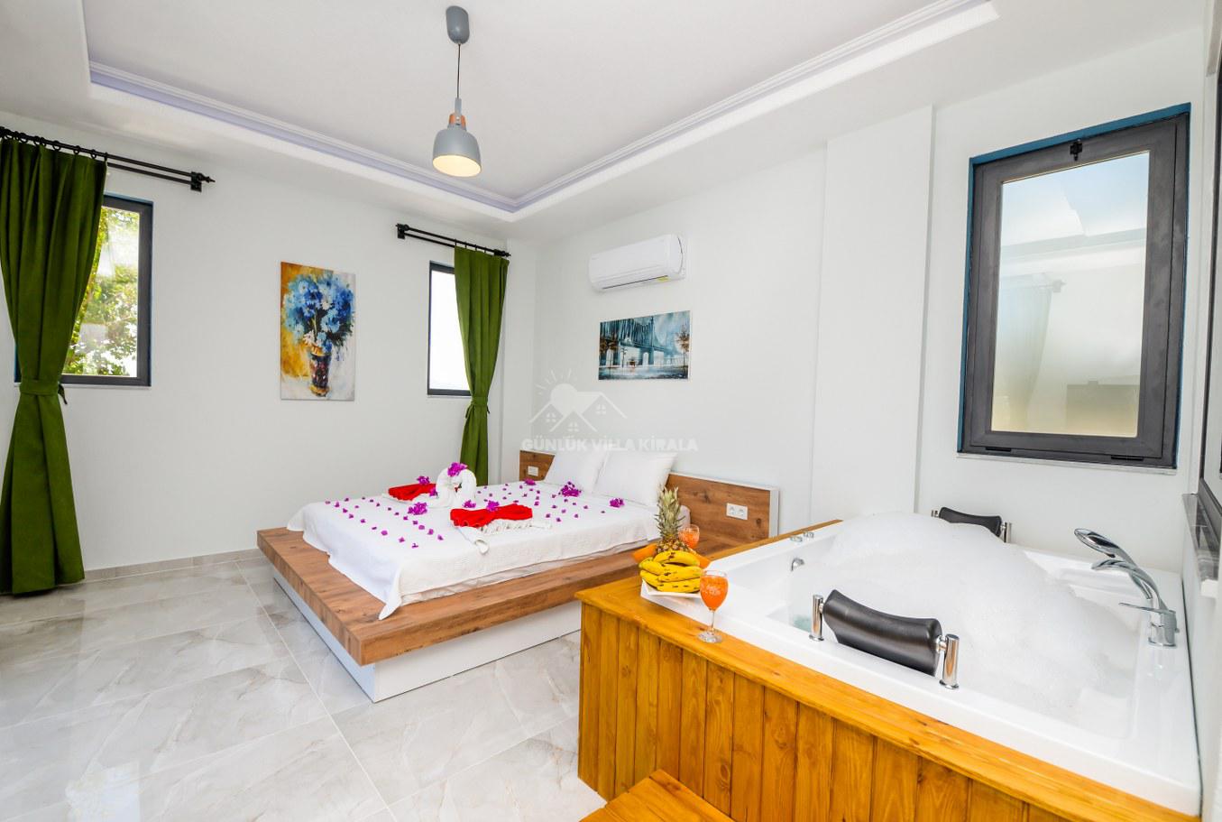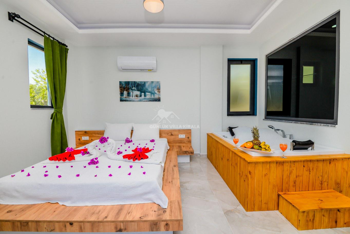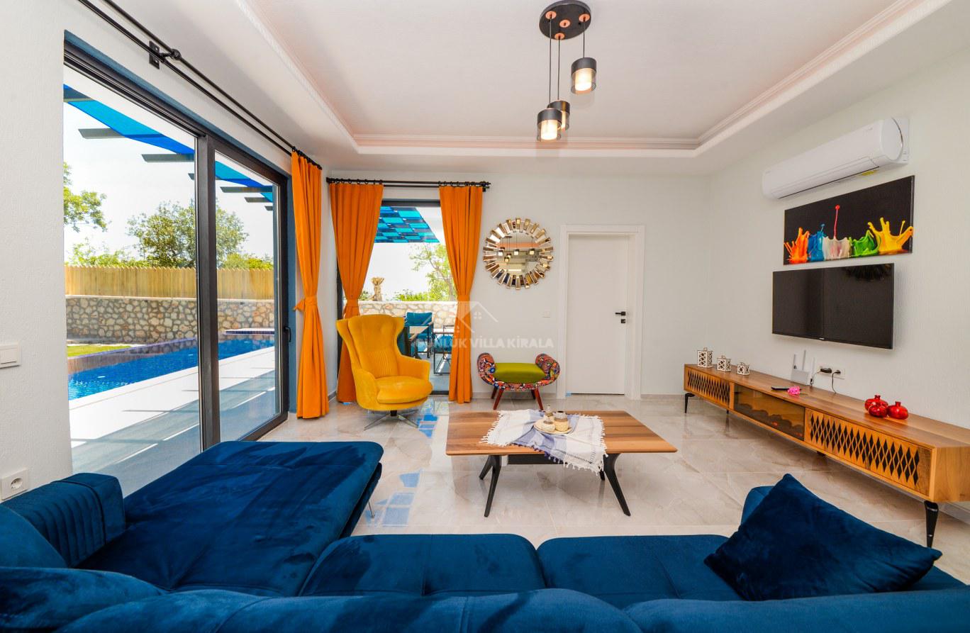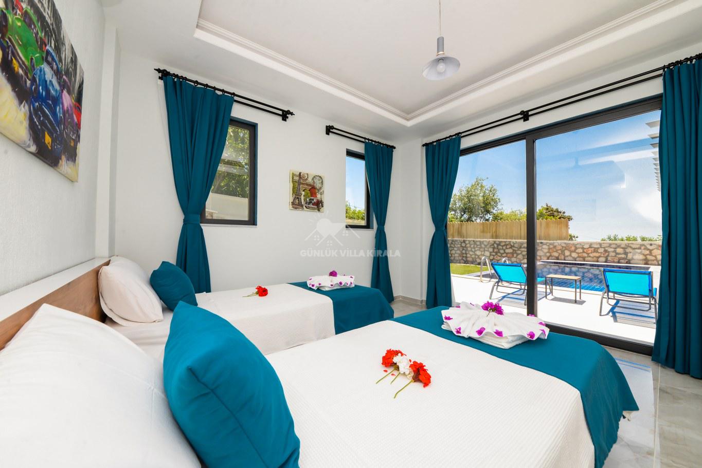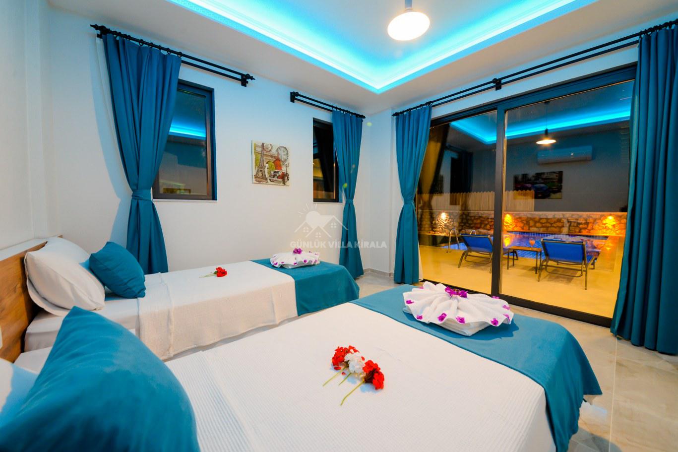 Kalkan Üzümlü bölgesinde, doğa içersinde bir tatil deneyimi sunanmuhafazakar kiralık villamızı tanıtmaktan mutluluk duyarız. 2 yatak odalı ve 4 kişi kapasiteli olan bu özel yüzme havuzlu villa, 2021 yılında tamamlanmış olup modern bir tasarıma sahiptir. Özellikle balayı çiftleri ve çocuklu aileler için ideal bir seçenek olan bu villa, sessizlik ve huzur arayan misafirlerimize geniş havuz terası ve bahçe alanında rahat bir tatil imkanı sunmaktadır. Ayrıca TV sisteminde Netflix gibi platformlardan film izleyebilme imkanı da bulunmaktadır. Unutulmaz bir tatil için villamızın tüm yatak odalarından havuz terasına çıkış imkanı da sunulmaktadır.
