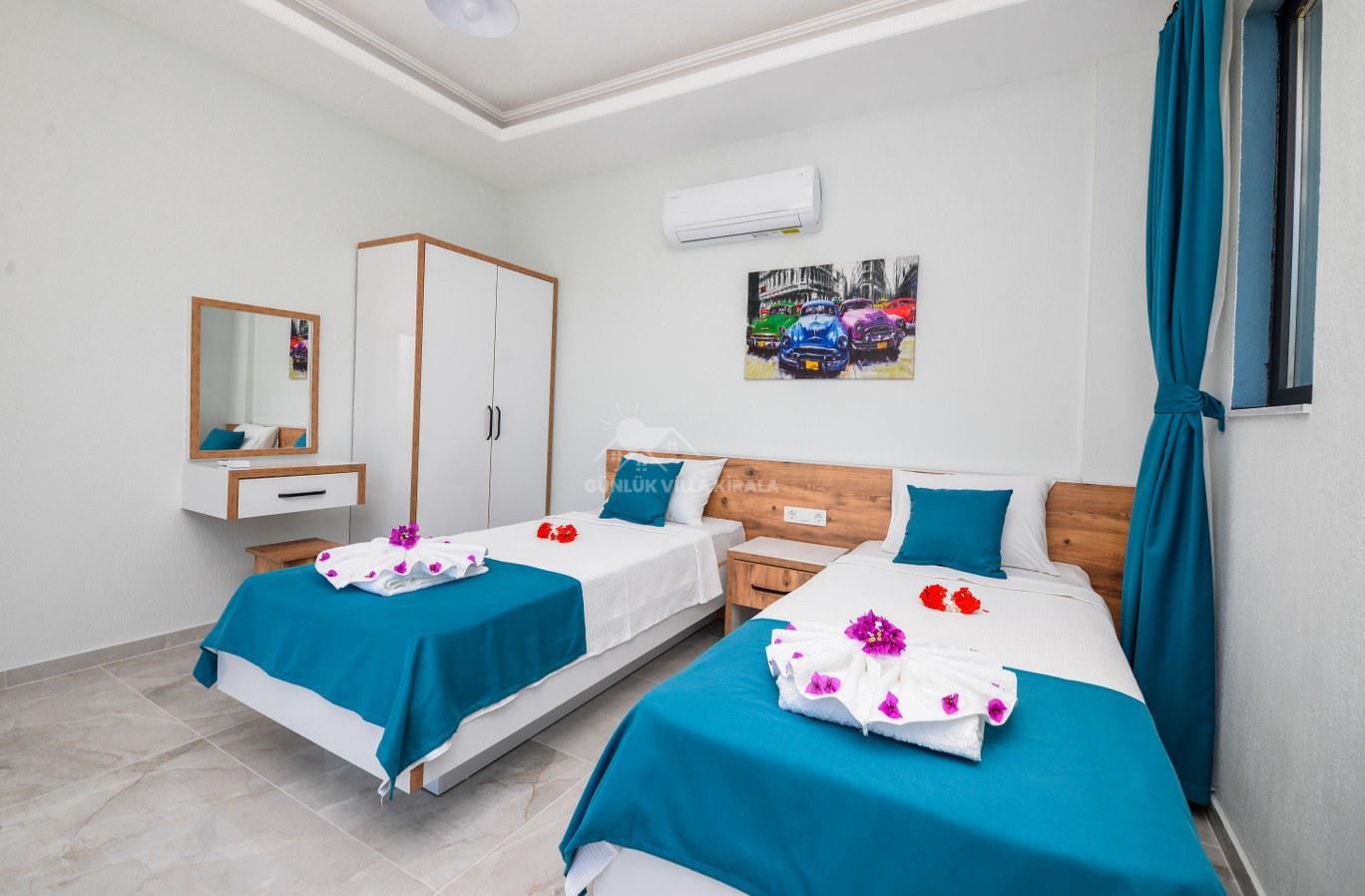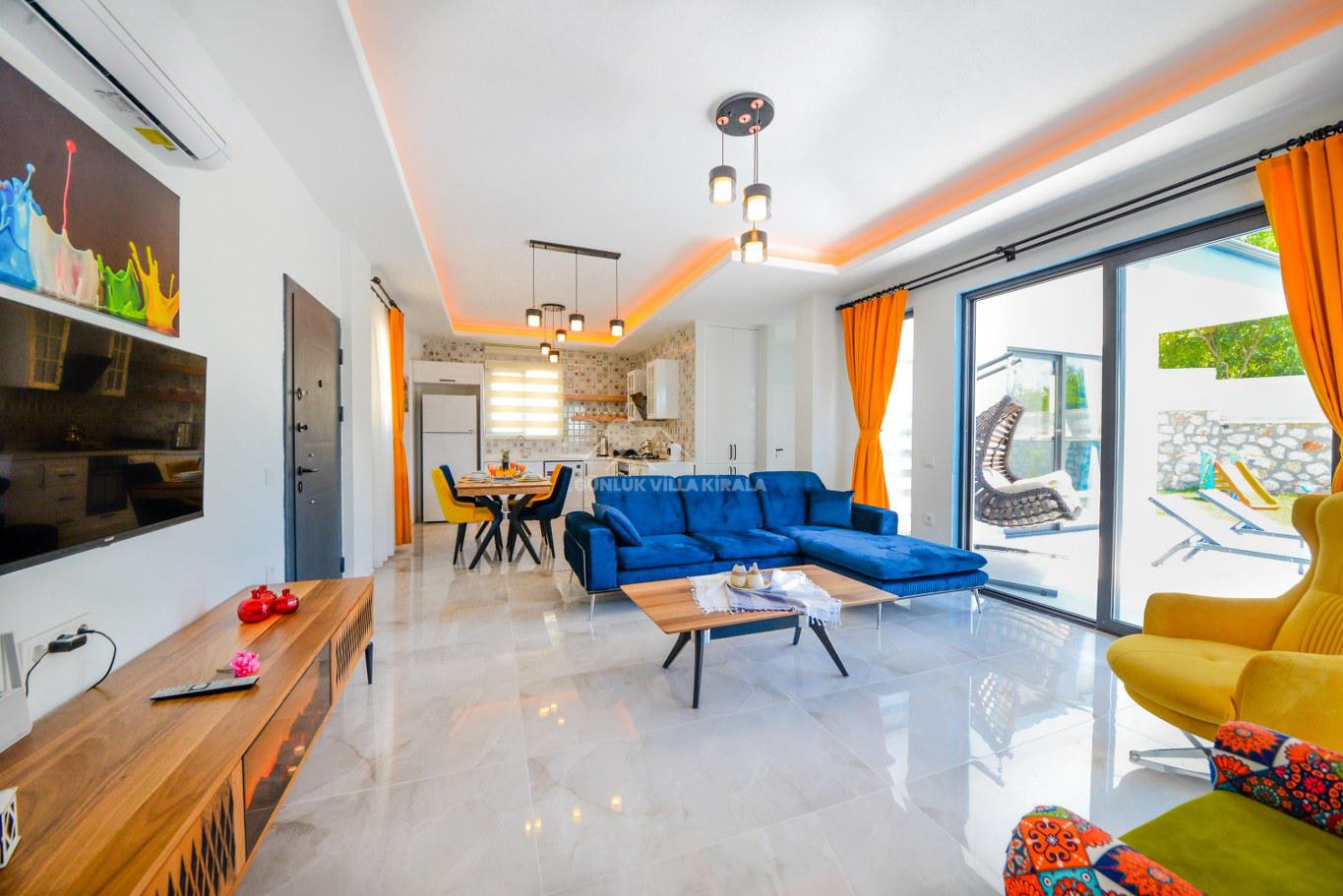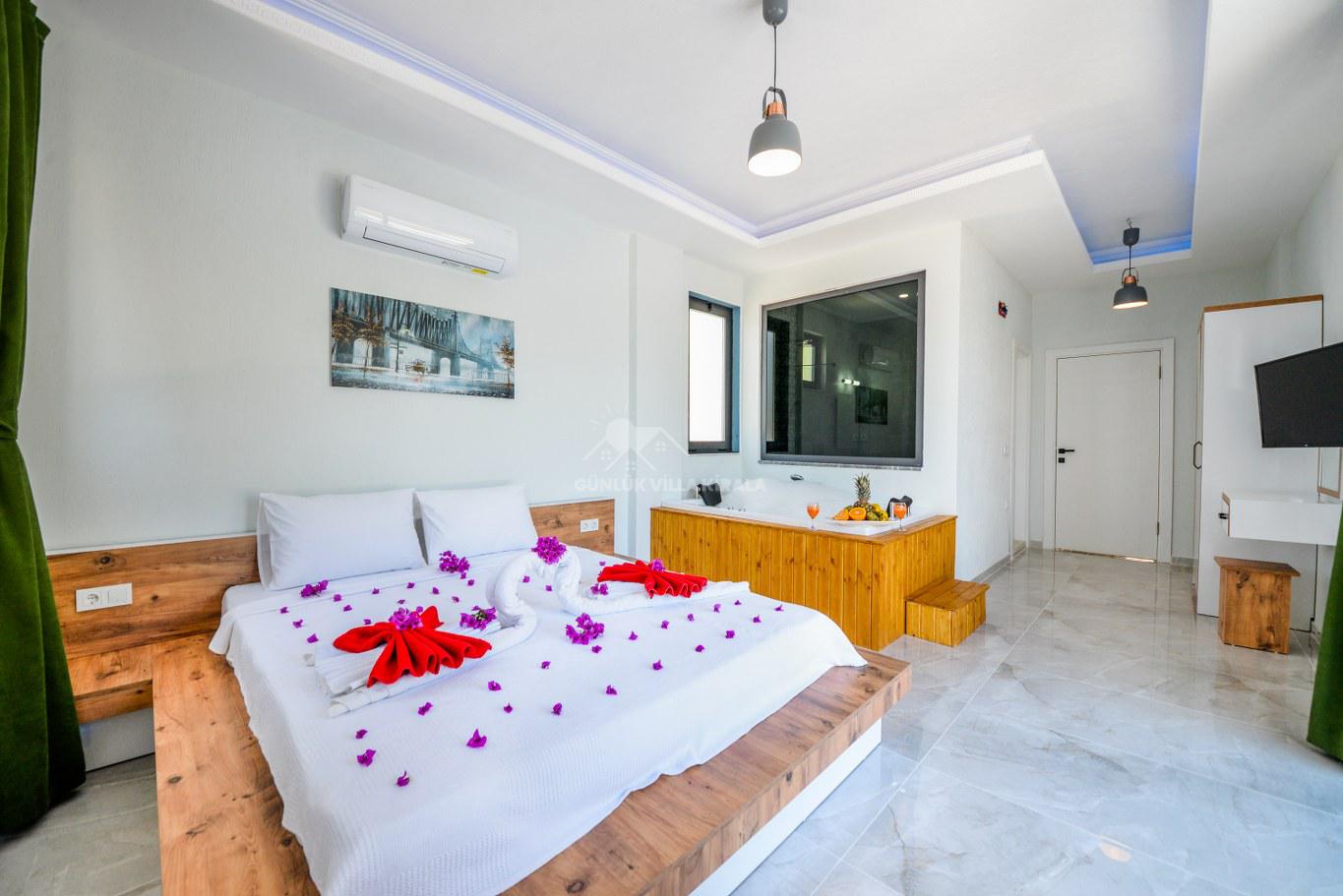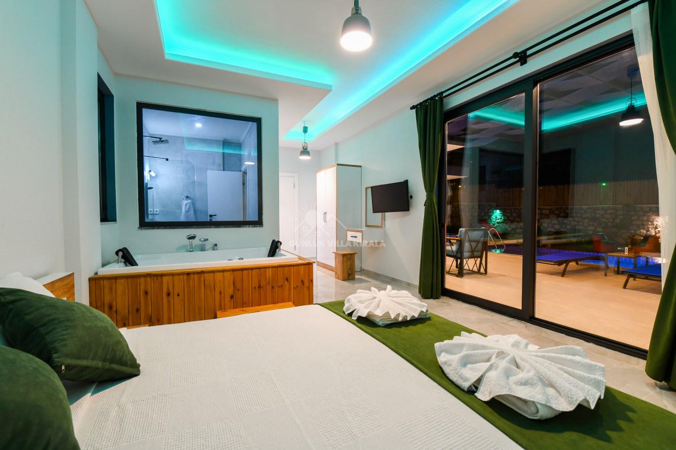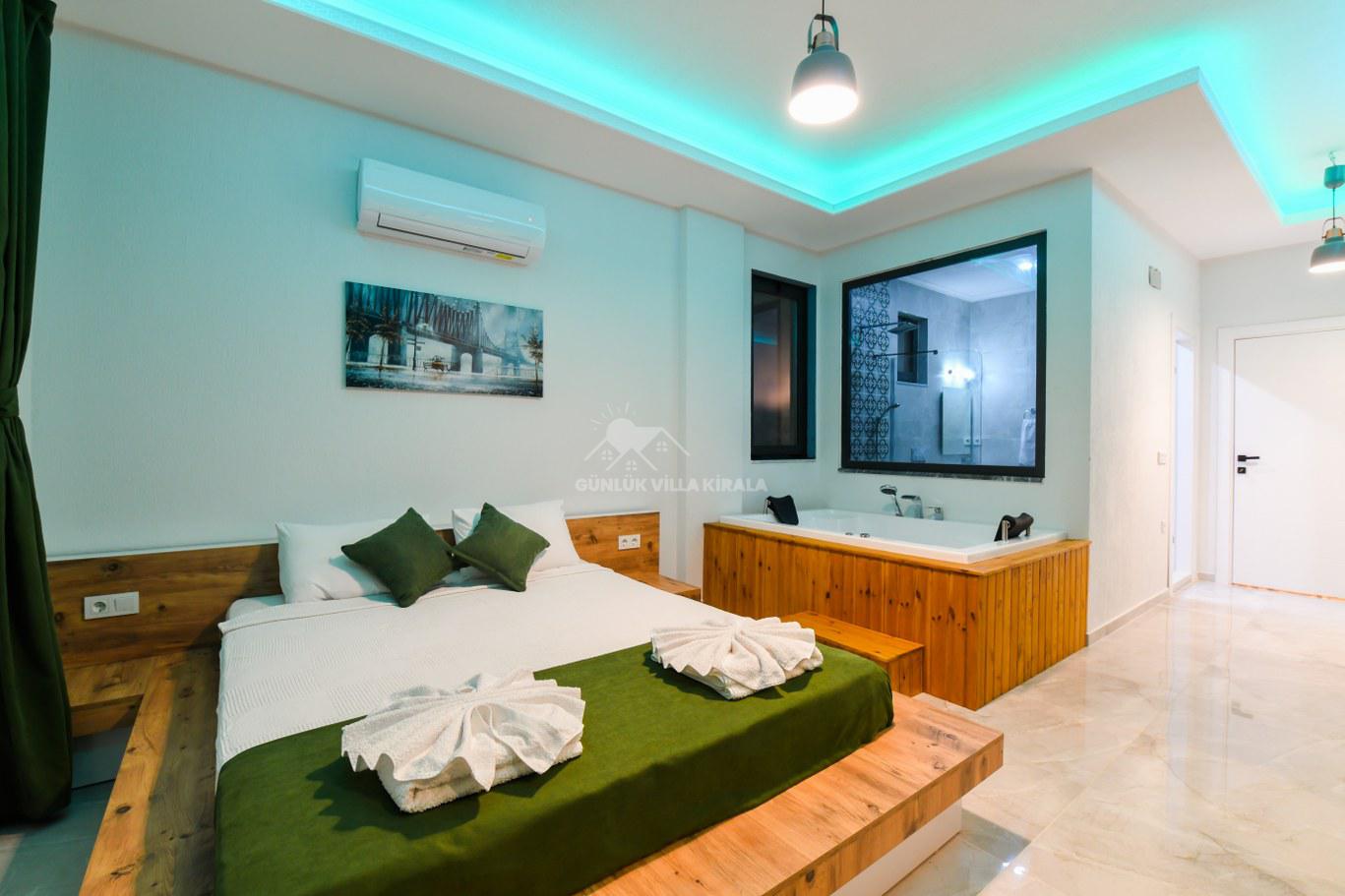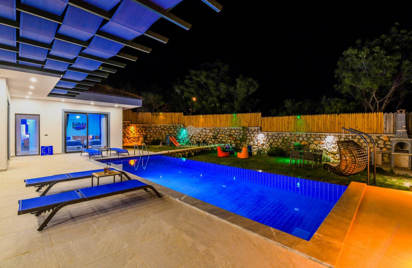 Kalkan Üzümlü bölgesinde, doğa içersinde bir tatil deneyimi sunanmuhafazakar kiralık villamızı tanıtmaktan mutluluk duyarız. 2 yatak odalı ve 4 kişi kapasiteli olan bu özel yüzme havuzlu villa, 2021 yılında tamamlanmış olup modern bir tasarıma sahiptir. Özellikle balayı çiftleri ve çocuklu aileler için ideal bir seçenek olan bu villa, sessizlik ve huzur arayan misafirlerimize geniş havuz terası ve bahçe alanında rahat bir tatil imkanı sunmaktadır. Ayrıca TV sisteminde Netflix gibi platformlardan film izleyebilme imkanı da bulunmaktadır. Unutulmaz bir tatil için villamızın tüm yatak odalarından havuz terasına çıkış imkanı da sunulmaktadır.