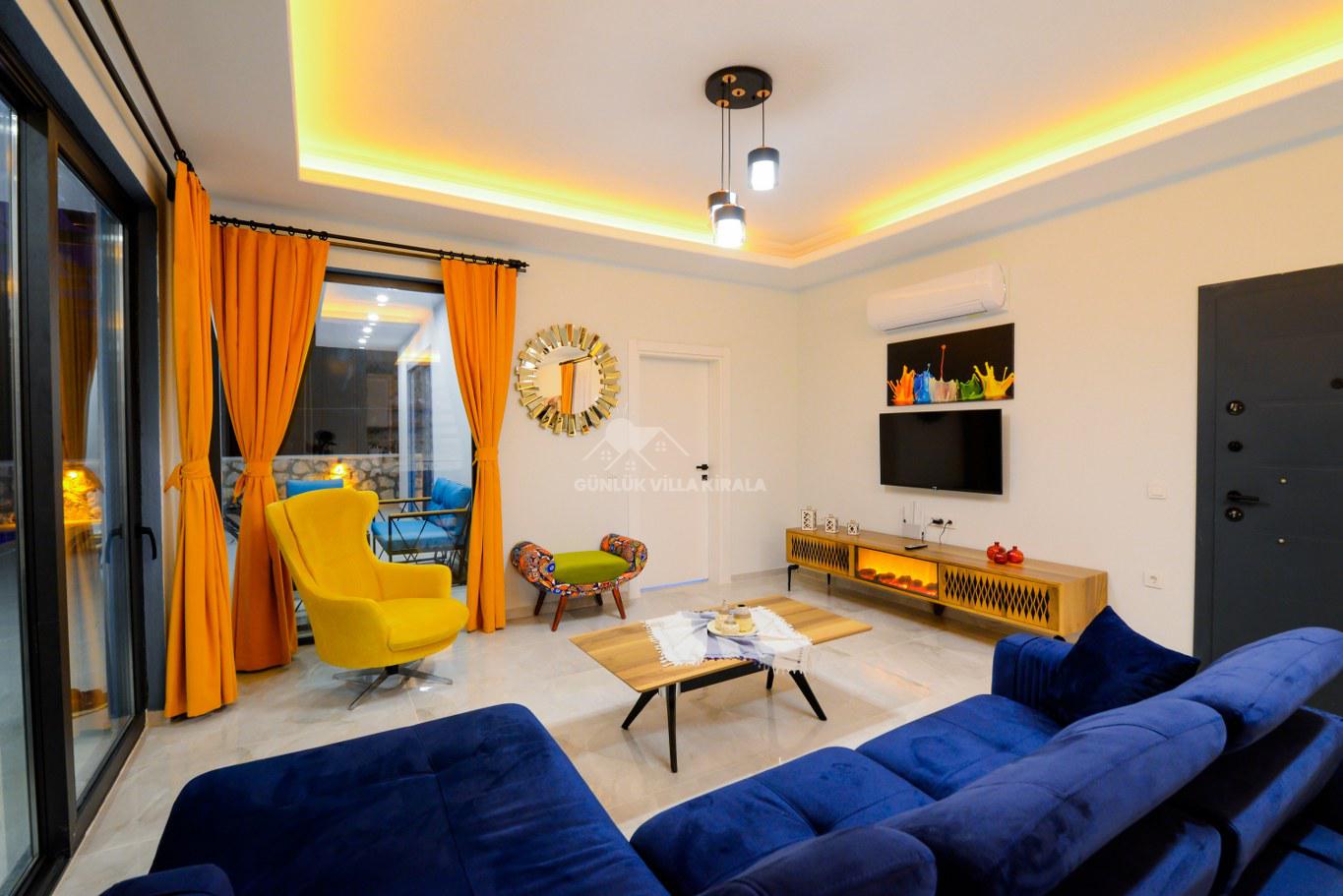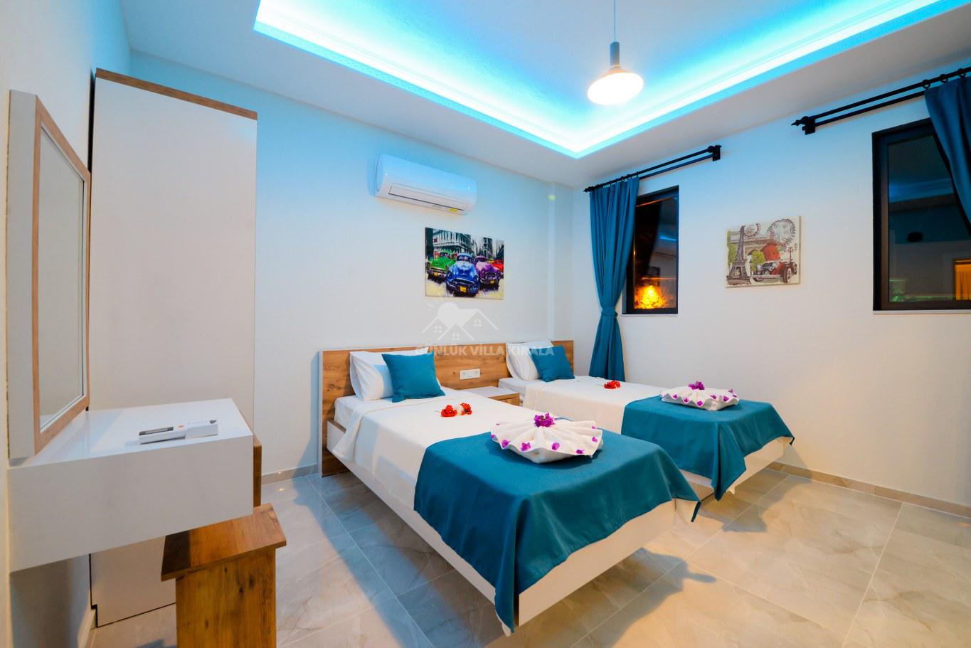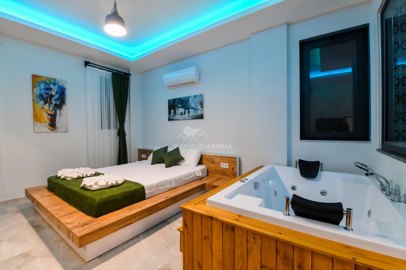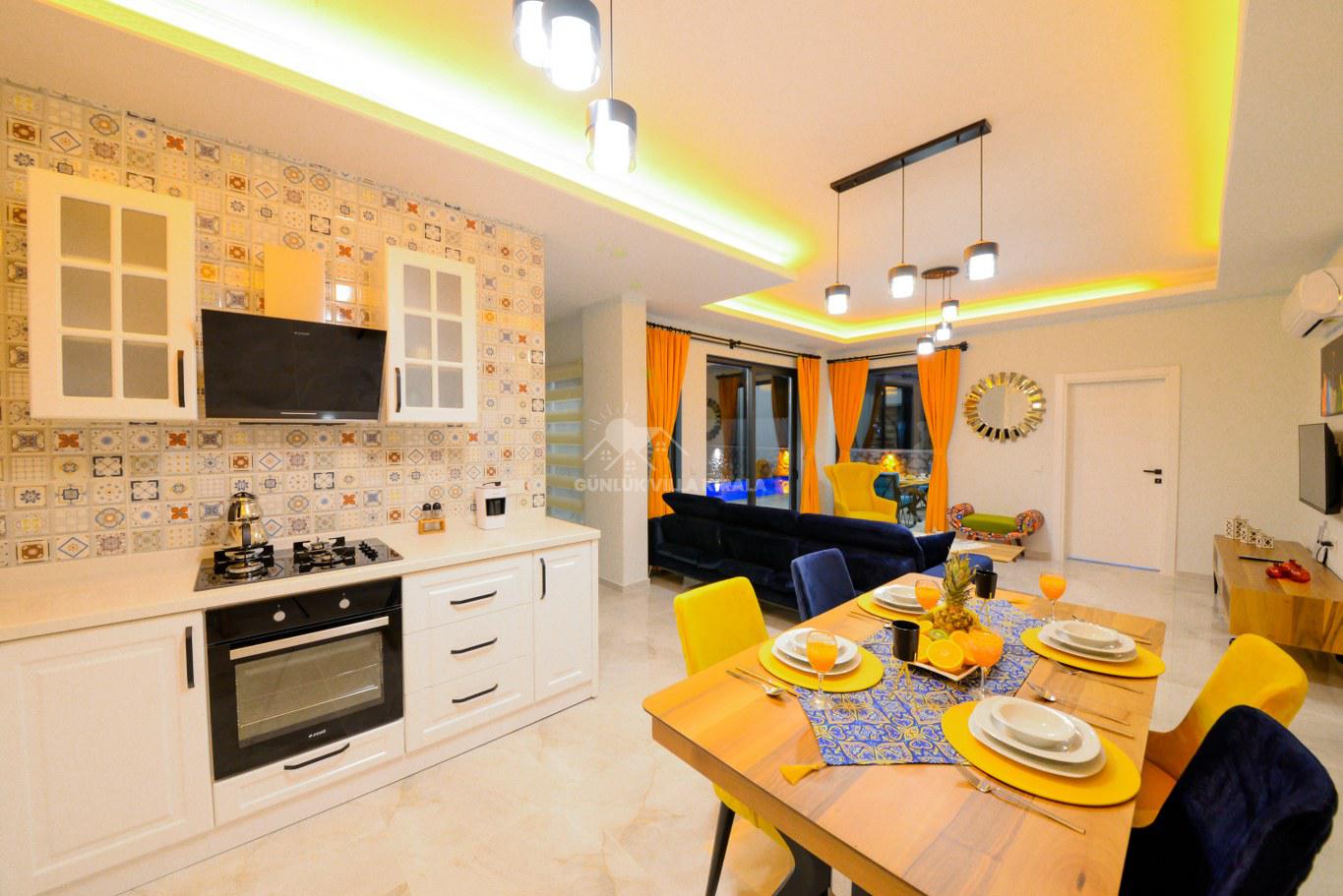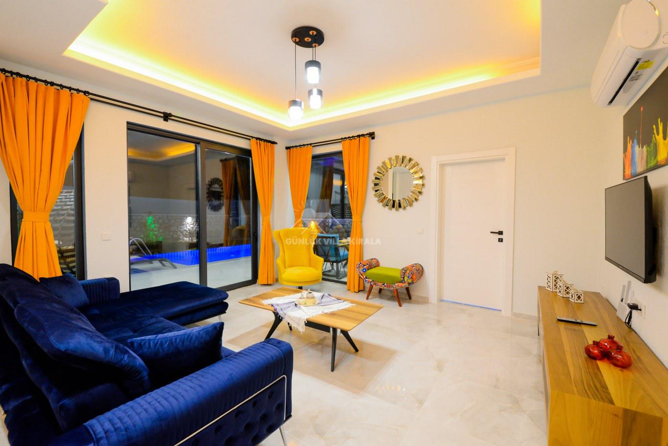 Kalkan Üzümlü bölgesinde, doğa içersinde bir tatil deneyimi sunanmuhafazakar kiralık villamızı tanıtmaktan mutluluk duyarız. 2 yatak odalı ve 4 kişi kapasiteli olan bu özel yüzme havuzlu villa, 2021 yılında tamamlanmış olup modern bir tasarıma sahiptir. Özellikle balayı çiftleri ve çocuklu aileler için ideal bir seçenek olan bu villa, sessizlik ve huzur arayan misafirlerimize geniş havuz terası ve bahçe alanında rahat bir tatil imkanı sunmaktadır. Ayrıca TV sisteminde Netflix gibi platformlardan film izleyebilme imkanı da bulunmaktadır. Unutulmaz bir tatil için villamızın tüm yatak odalarından havuz terasına çıkış imkanı da sunulmaktadır.
