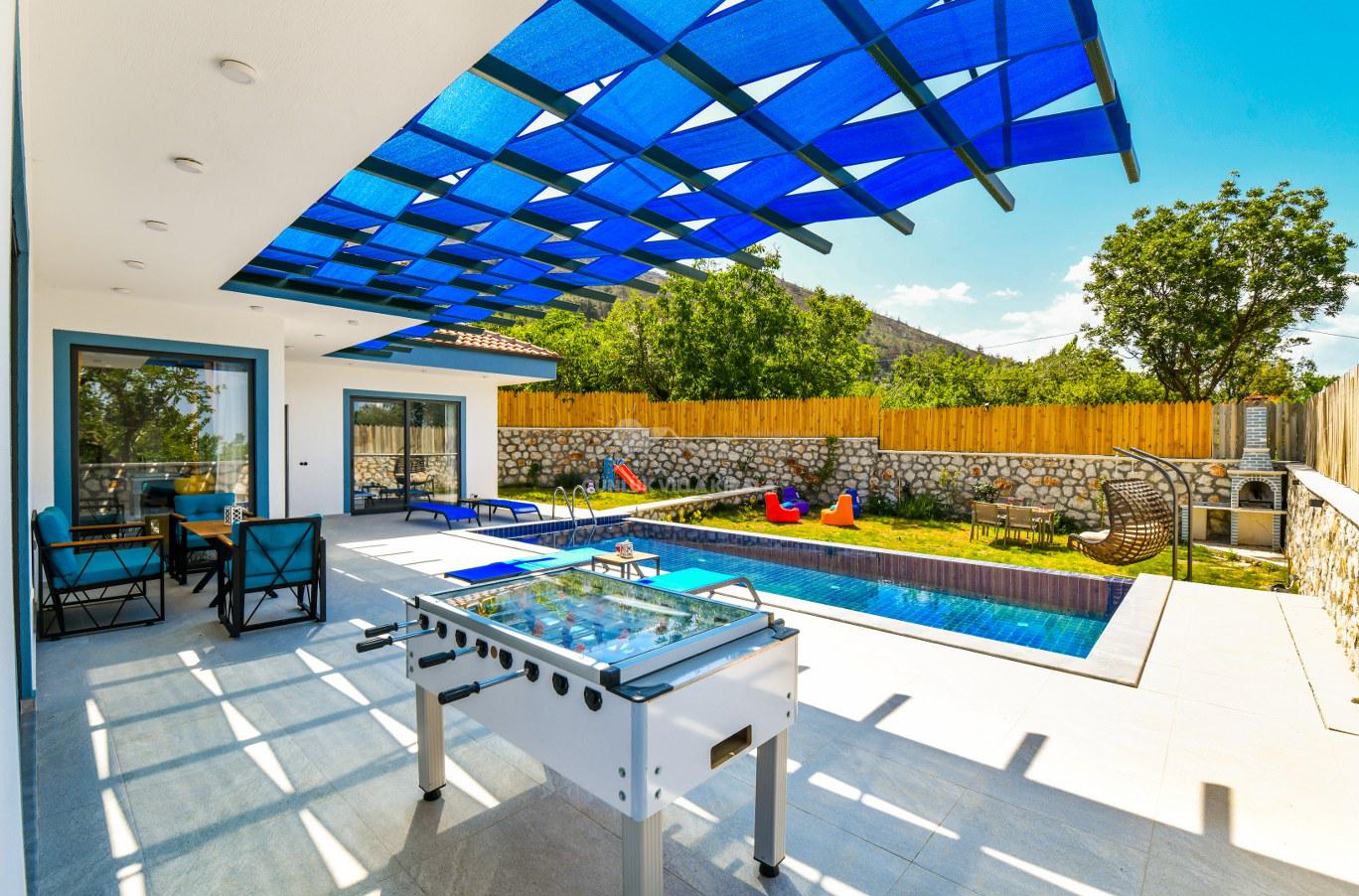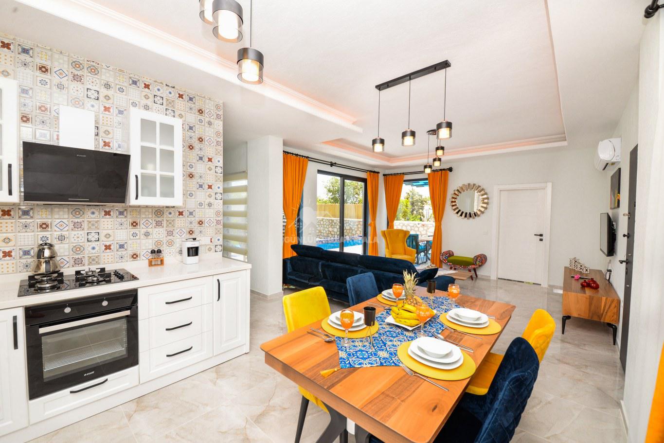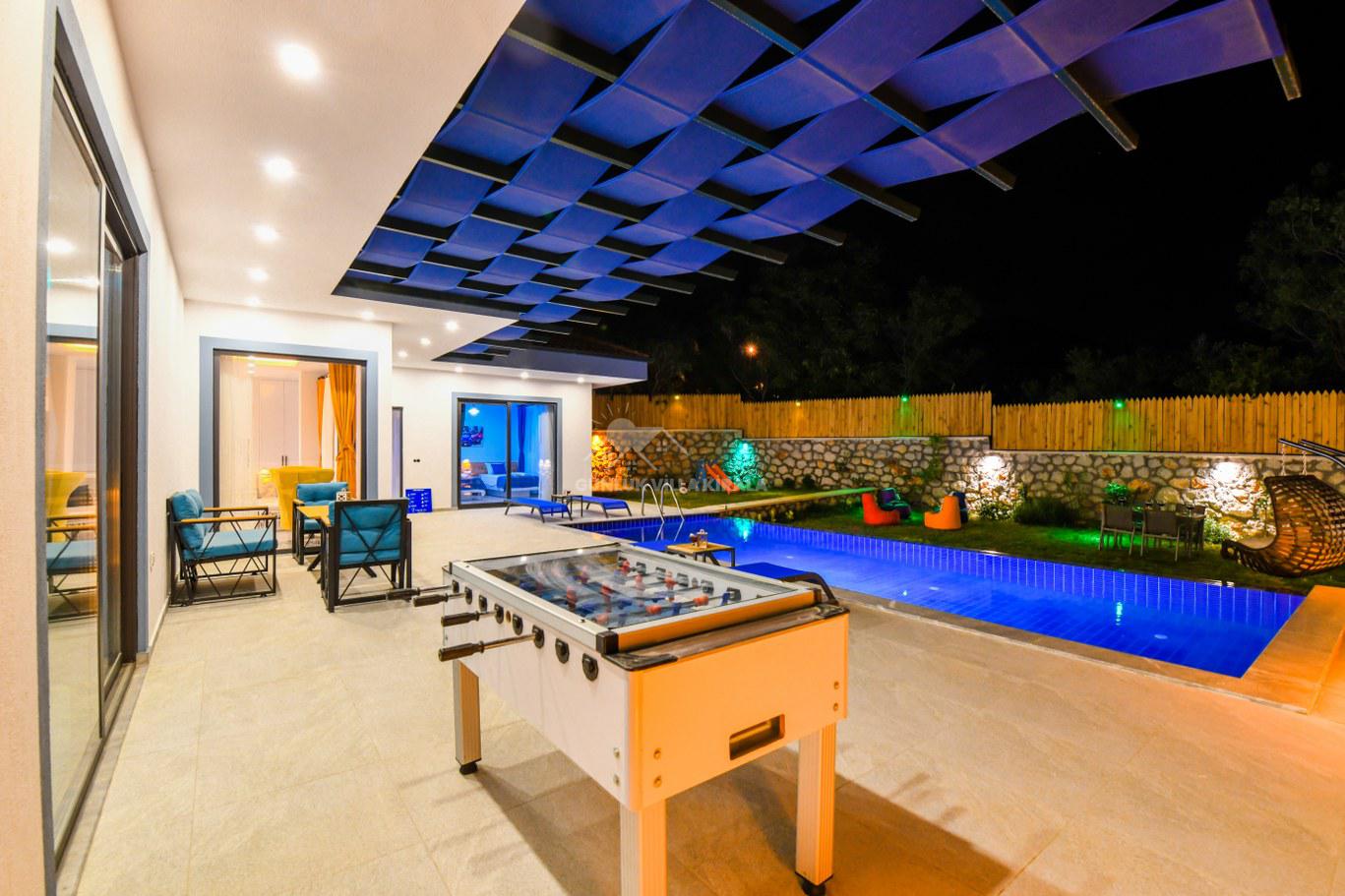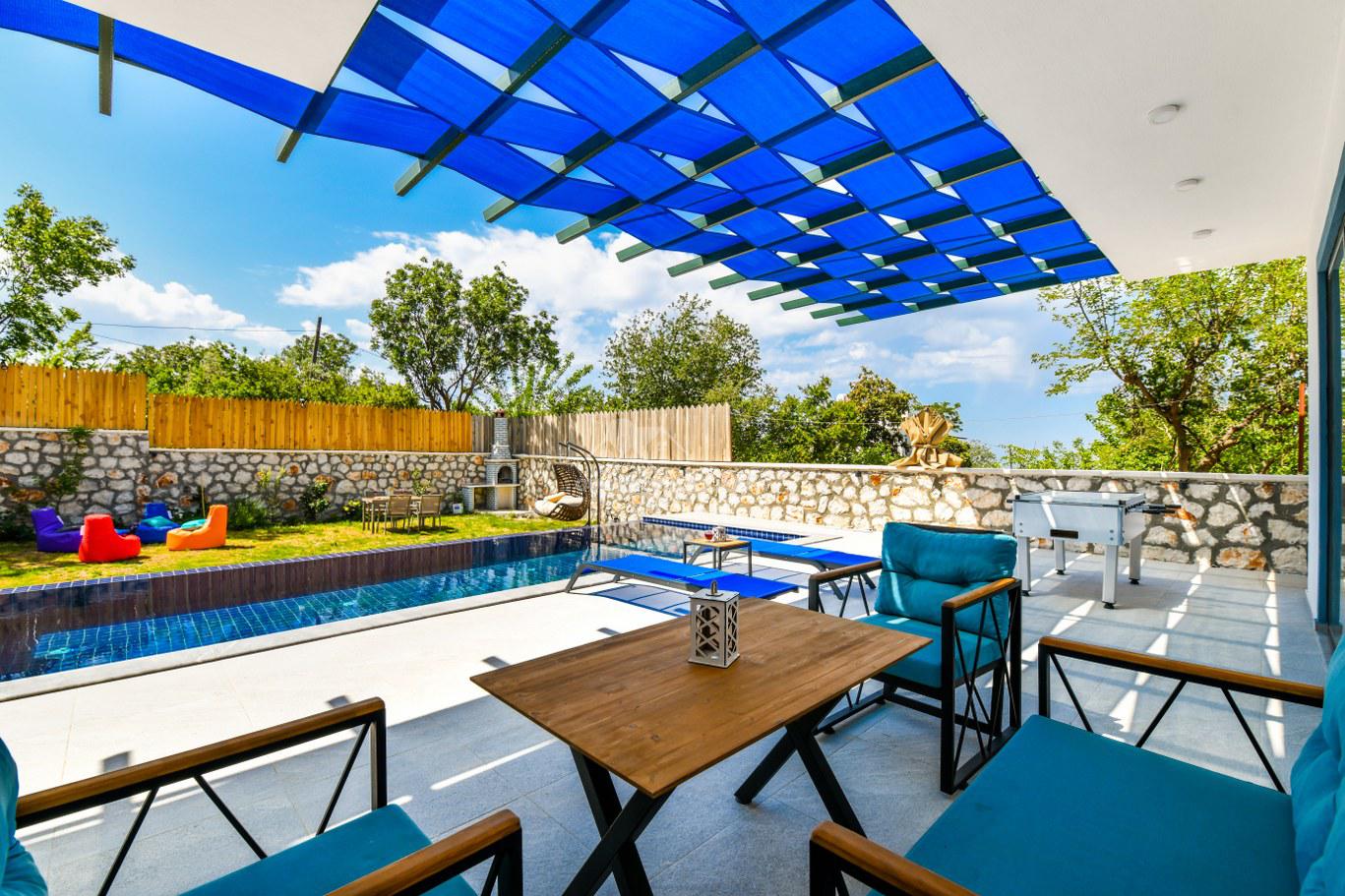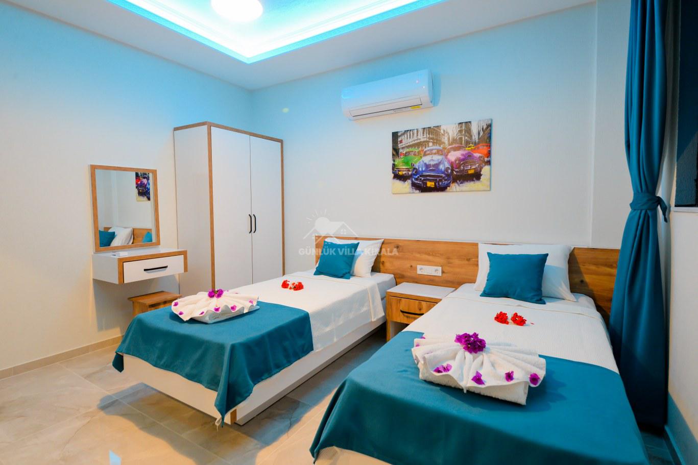 Kalkan Üzümlü bölgesinde, doğa içersinde bir tatil deneyimi sunanmuhafazakar kiralık villamızı tanıtmaktan mutluluk duyarız. 2 yatak odalı ve 4 kişi kapasiteli olan bu özel yüzme havuzlu villa, 2021 yılında tamamlanmış olup modern bir tasarıma sahiptir. Özellikle balayı çiftleri ve çocuklu aileler için ideal bir seçenek olan bu villa, sessizlik ve huzur arayan misafirlerimize geniş havuz terası ve bahçe alanında rahat bir tatil imkanı sunmaktadır. Ayrıca TV sisteminde Netflix gibi platformlardan film izleyebilme imkanı da bulunmaktadır. Unutulmaz bir tatil için villamızın tüm yatak odalarından havuz terasına çıkış imkanı da sunulmaktadır.