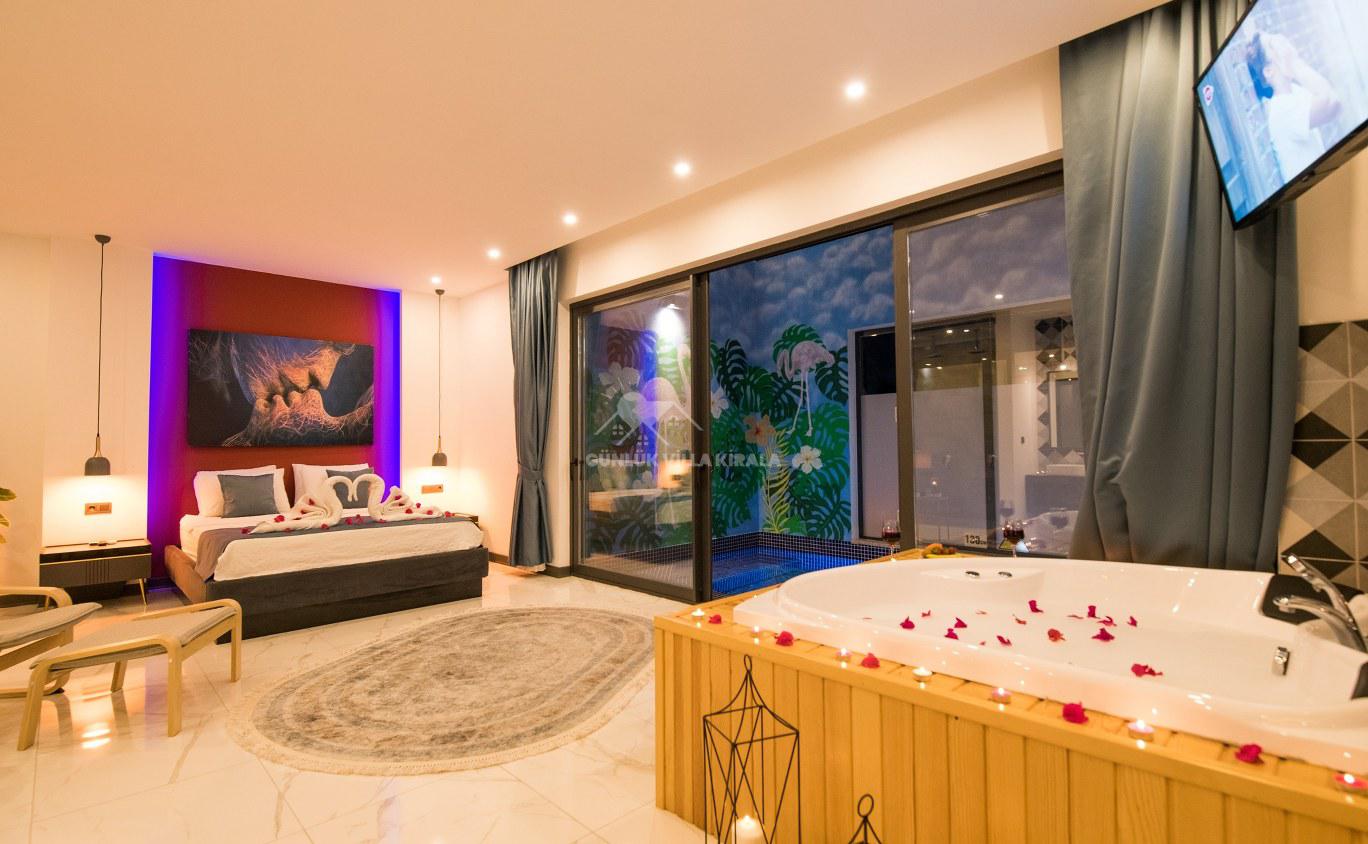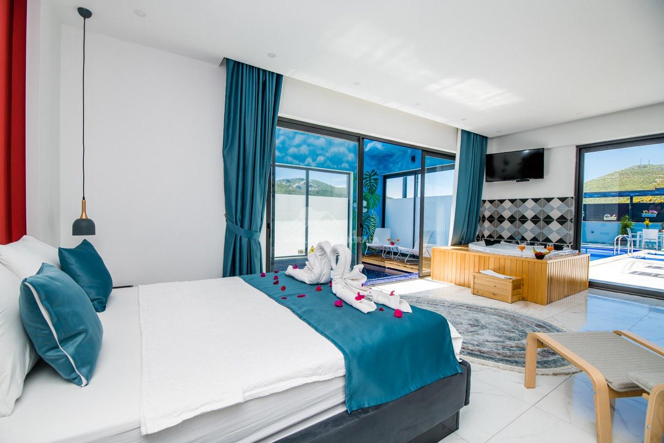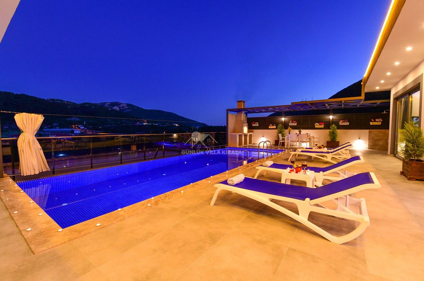 Antalya'nın muhteşem doğasında, Kaş ilçesinin Kalkan Sarıbelen mevkiinde bulunan Villa Sedef, 4 kişilik konaklama kapasitesiyle küçük aileler ve arkadaş grupları için harika bir tatil seçeneği sunmaktadır. Bu villa, rahatınızı düşünen detaylara sahip olarak tasarlanmıştır. Villamızın muhteşem havuz terasında günün stresini salıncakta sallanarak atabilir ve keyifli anılar biriktirebilirsiniz. Aynı zamanda geniş salon alanı, bir arada vakit geçirmenizi sağlayacak konforlu bir ortam sunmaktadır. Villa Sedef, tüm ihtiyaçlarınızı karşılayacak donanıma sahip bir mutfak, ferah ve şık bir oturma odası, rahat yatak odaları ve modern banyolarıyla sizlere evinizin konforunu sunar. Ayrıca villa içerisinde ücretsiz internet erişimi ve televizyon gibi olanaklar da mevcuttur. Sarıbelen mevkii, doğal güzellikleri, berrak denizi ve sakin atmosferiyle ünlüdür. Bu eşsiz doğa ve deniz manzarasına sahip olan Villa Sedef, hem dinlenmek hem de geziler yapmak isteyen misafirler için mükemmel bir konumdadır. Unutulmaz bir tatil deneyimi için Villa Sedef'i tercih edebilirsiniz. Kaliteli ve konforlu bir konaklama seçeneği sunan bu villa, size huzurlu ve keyifli bir tatil yaşatacaktır. Tatiliniz boyunca size yardımcı olacak olan personelimiz de her zaman yanınızda olacaktır.