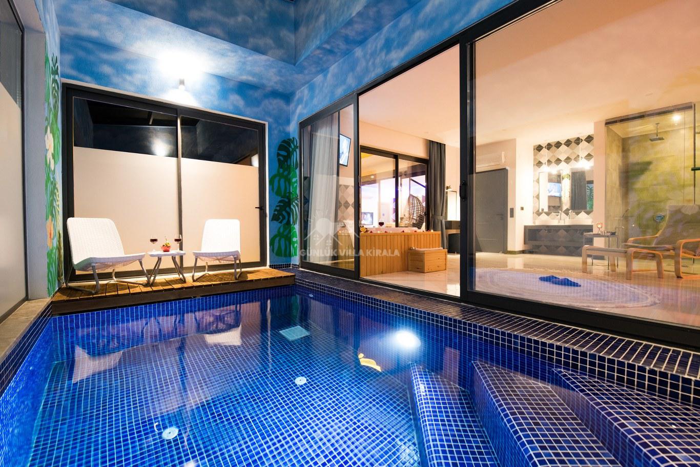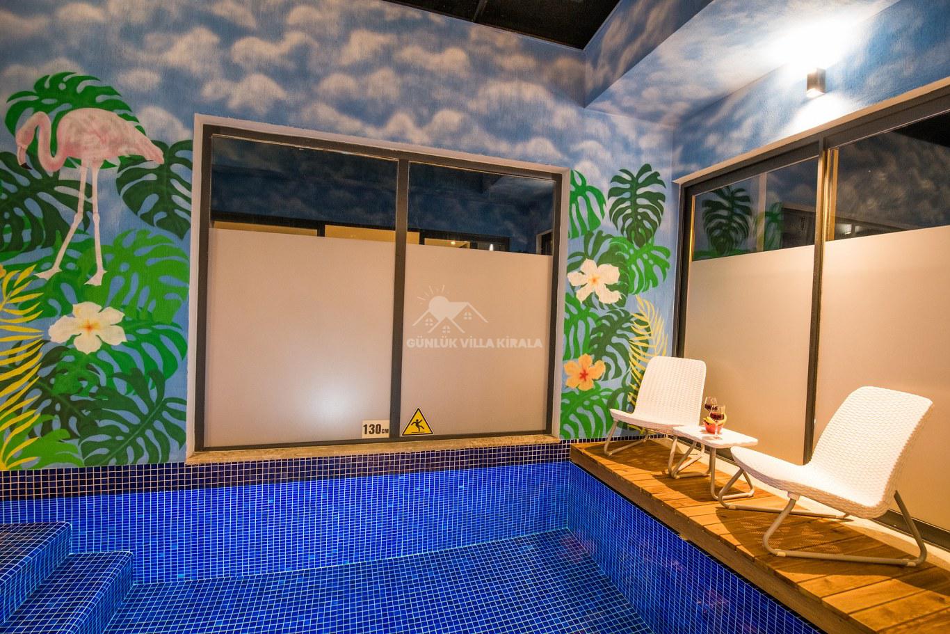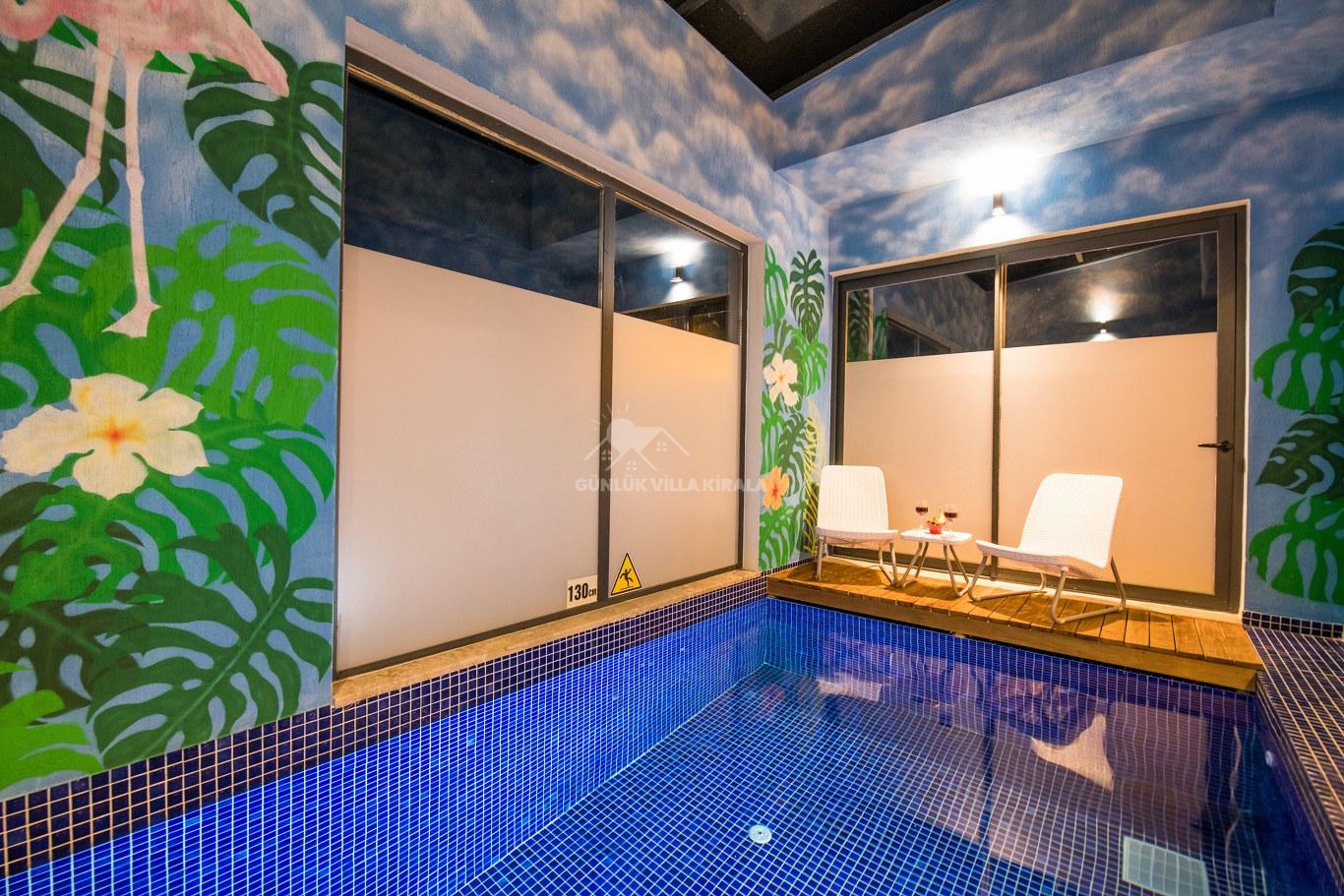 Villamızın içerisinde 1 adet kapalı havuz bulunmaktadır kapalı havuzun ısıtmasını açtırmak istiyen misafirlerimiz gecelik 1000 tl ücret ödemesi gerekmektedir